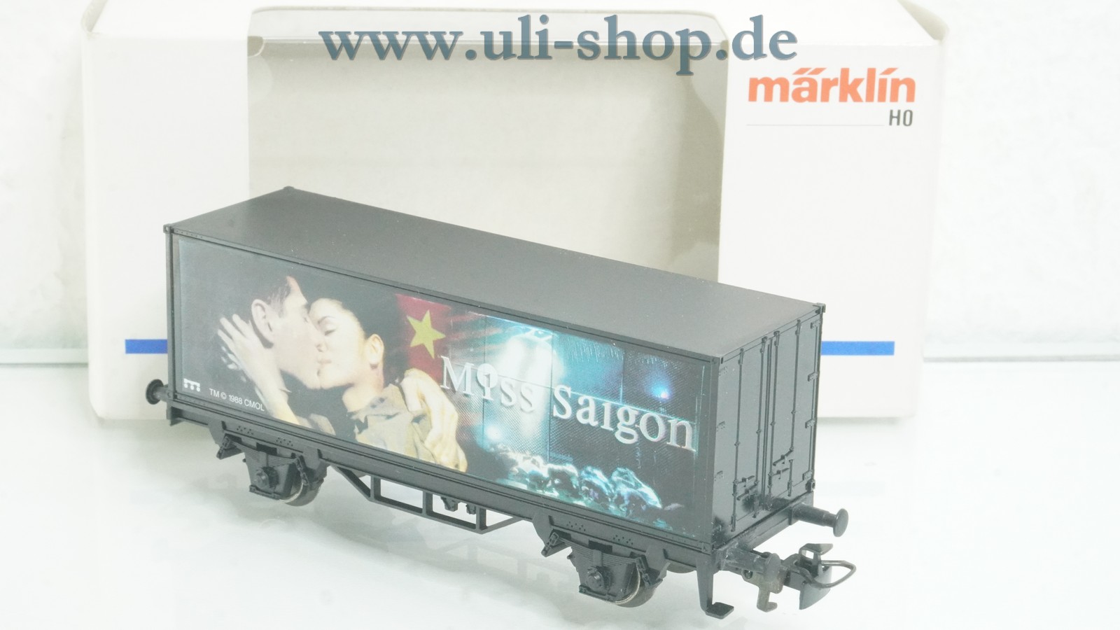 Märklin H0 Güterwagen Container-Musical Wagen Miss Saigon. Der Artikel ist für den Betrieb mit Wechselstrom vorgesehen. Die Originalverpackung ist vorhanden.