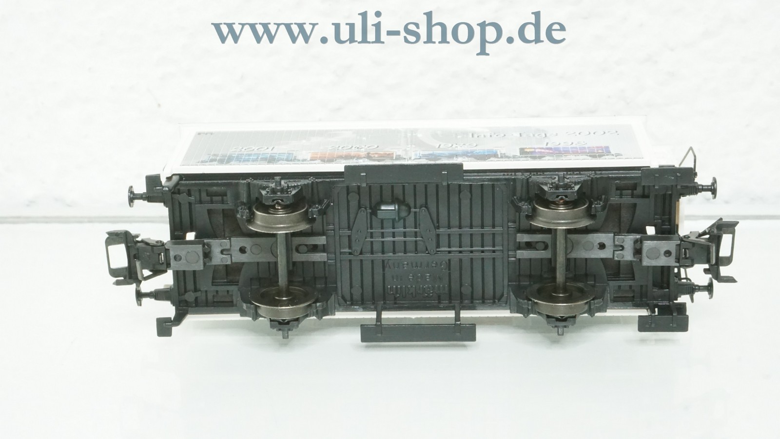 Märklin H0 Güterwagen Gedeckt mit Bremserhaus Info-Tage 2002 (AE070). Der Artikel ist für den Betrieb mit Wechselstrom vorgesehen. Die Originalverpackung ist vorhanden. Märklin Info Tage von 2002. Der Karton ist beklebt und beschriftet.