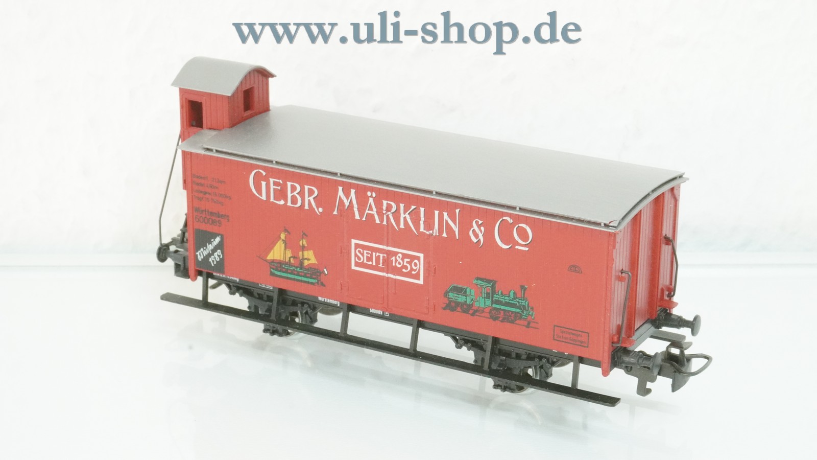 Märklin H0 Güterwagen Museumswagen 1989 mit Bremserhaus Gebr. Märklin & Co seit 1859. Der Artikel ist für den Betrieb mit Wechselstrom vorgesehen. Die Originalverpackung ist vorhanden. Leichte Kratzer am Dach. Eine Dachecke ist leicht beschädigt.