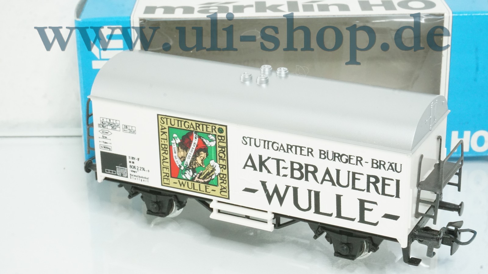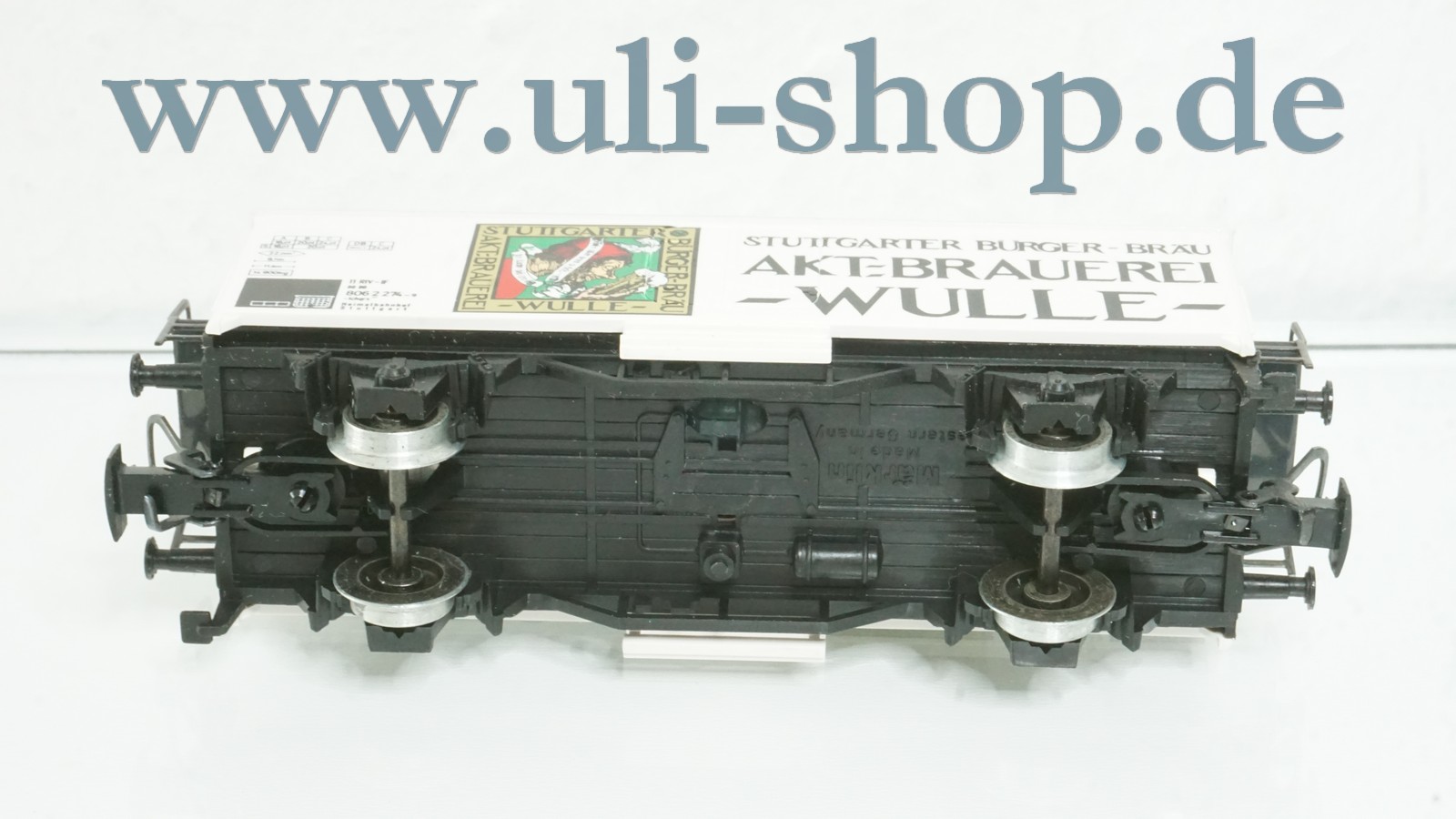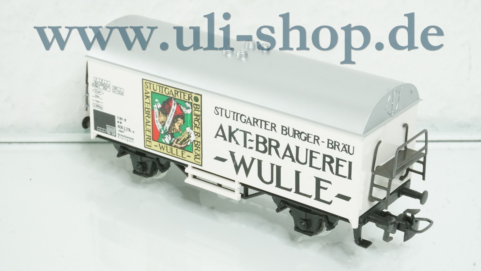 Märklin H0 Güterwagen mit der Artikelnummer 4415 Bierwagen der DB "Stuttgarter Bürger-Bräu Akt:Brauerei Wulle". Der Artikel ist für den Betrieb mit Wechselstrom vorgesehen. Die Originalverpackung ist vorhanden.