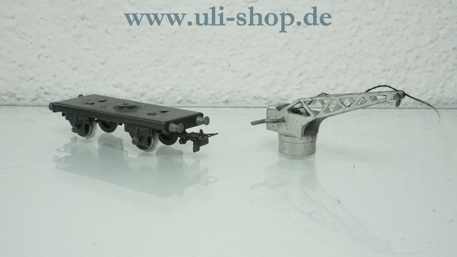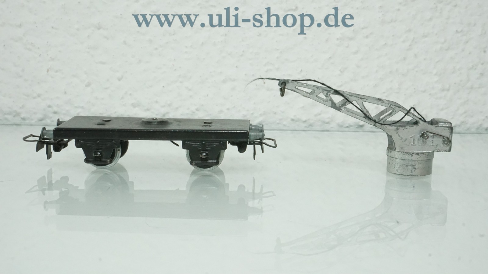 Märklin H0 Kleiner Kranwagen. Der Artikel ist für den Betrieb mit Wechselstrom vorgesehen. Beim Wagen fehlt der Haken und die Schraube zwischen Wagen und Kran.
