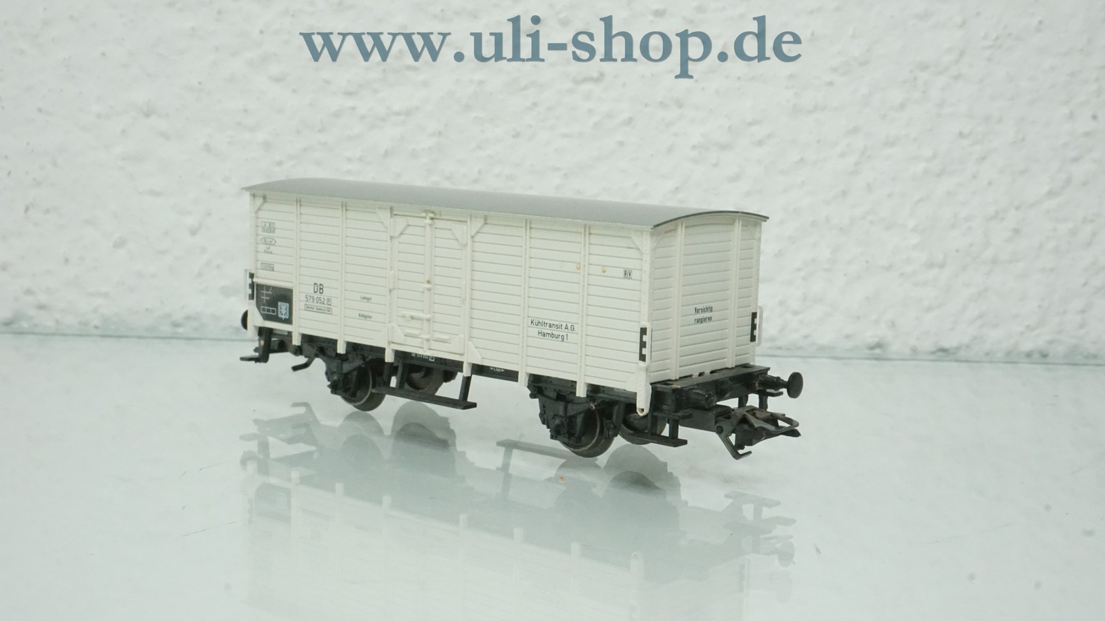 Märklin H0 Kühlwagen der DB. Der Artikel ist für den Betrieb mit Wechselstrom vorgesehen. Die Achsen haben etwas Flugrost. Am Dach ist eine kleine Ecke abgebrochen.