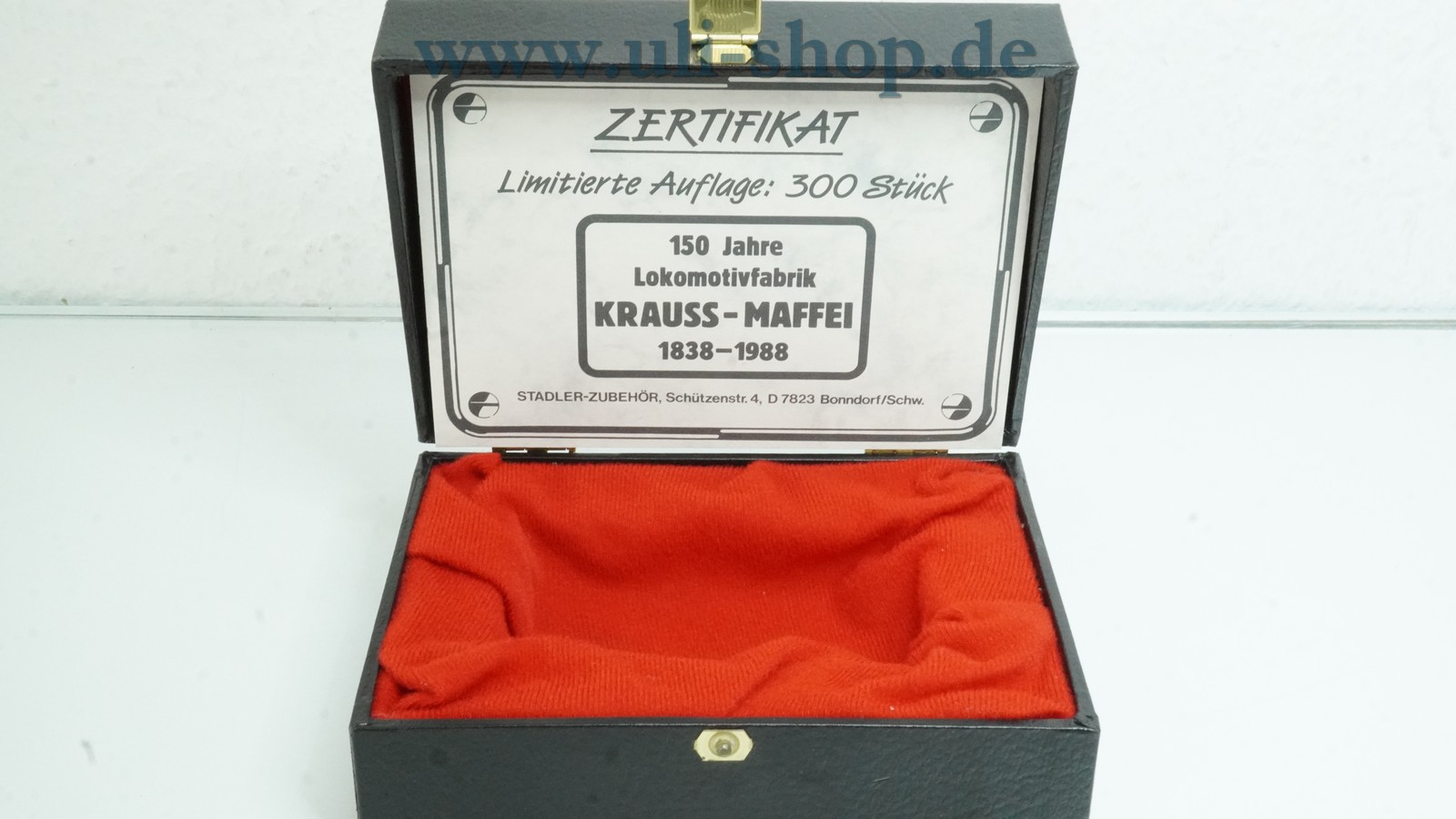 Märklin H0 Leerkarton 150 Jahre Lokomotivfabrik Krauss-Maffei 1893-1988. Es handelt sich hier nur um den Leerkarton ohne Inhalt. Das Zertifikat ist vorhanden.