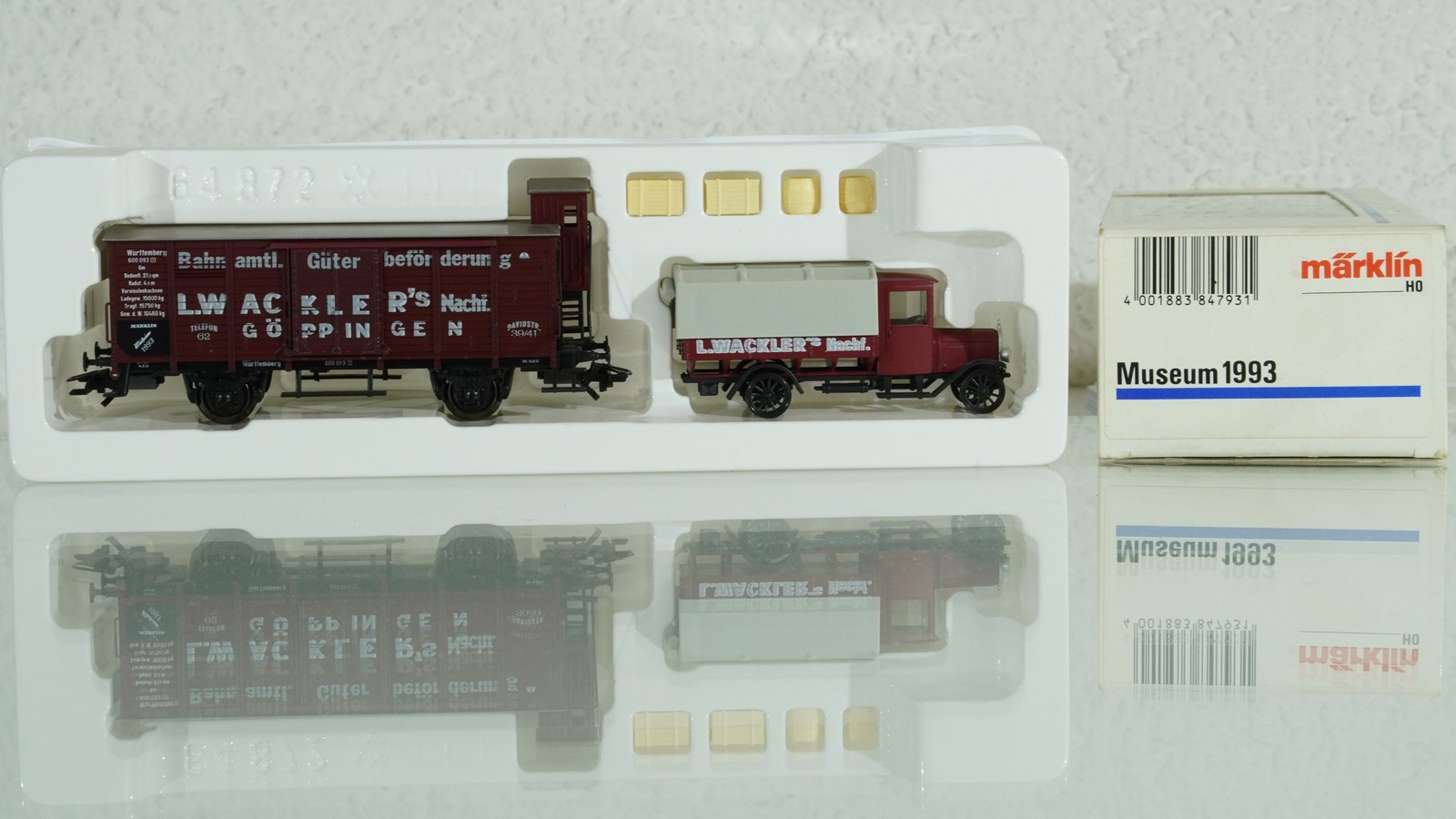 Märklin H0 Güterwagen Museumswagen 1993 L. Wackler Göppingen. Der Artikel ist für den Betrieb mit Wechselstrom vorgesehen. Die Originalverpackung ist vorhanden.