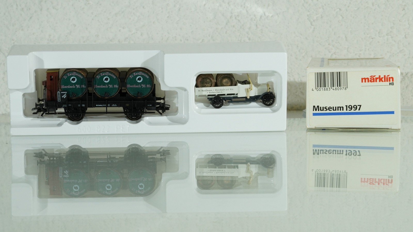 Märklin H0 Güterwagen Museumswagen 1997 Fa. Kaufmann Ebersbach. Der Artikel ist für den Betrieb mit Wechselstrom vorgesehen. Die Originalverpackung ist vorhanden.