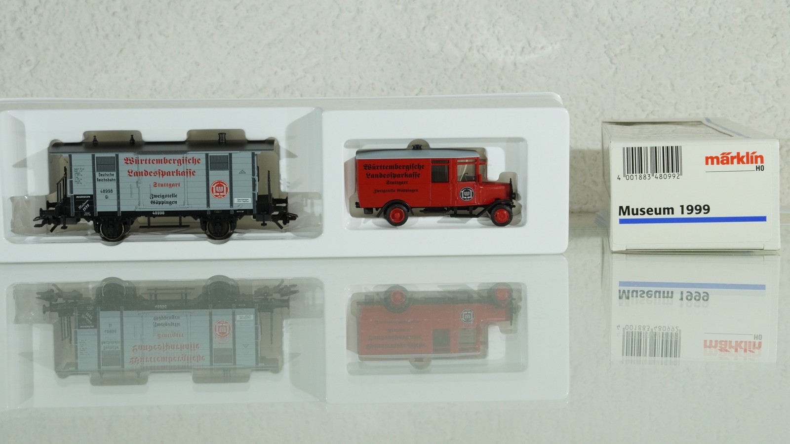 Märklin H0 Güterwagen Museumswagen 1999 Württembergische Landessparkasse Göppingen der DRG. Der Artikel ist für den Betrieb mit Wechselstrom vorgesehen. Die Originalverpackung ist vorhanden.