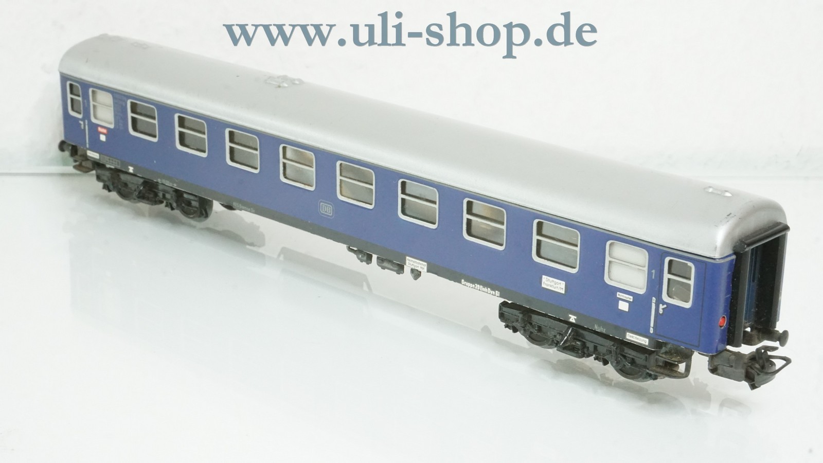 Märklin H0 Personenwagen der DB 1. Klasse aus Blech. Der Artikel ist für den Betrieb mit Wechselstrom vorgesehen. Die Originalverpackung ist leider nicht mehr vorhanden. Der Wagen ist beleuchtet.