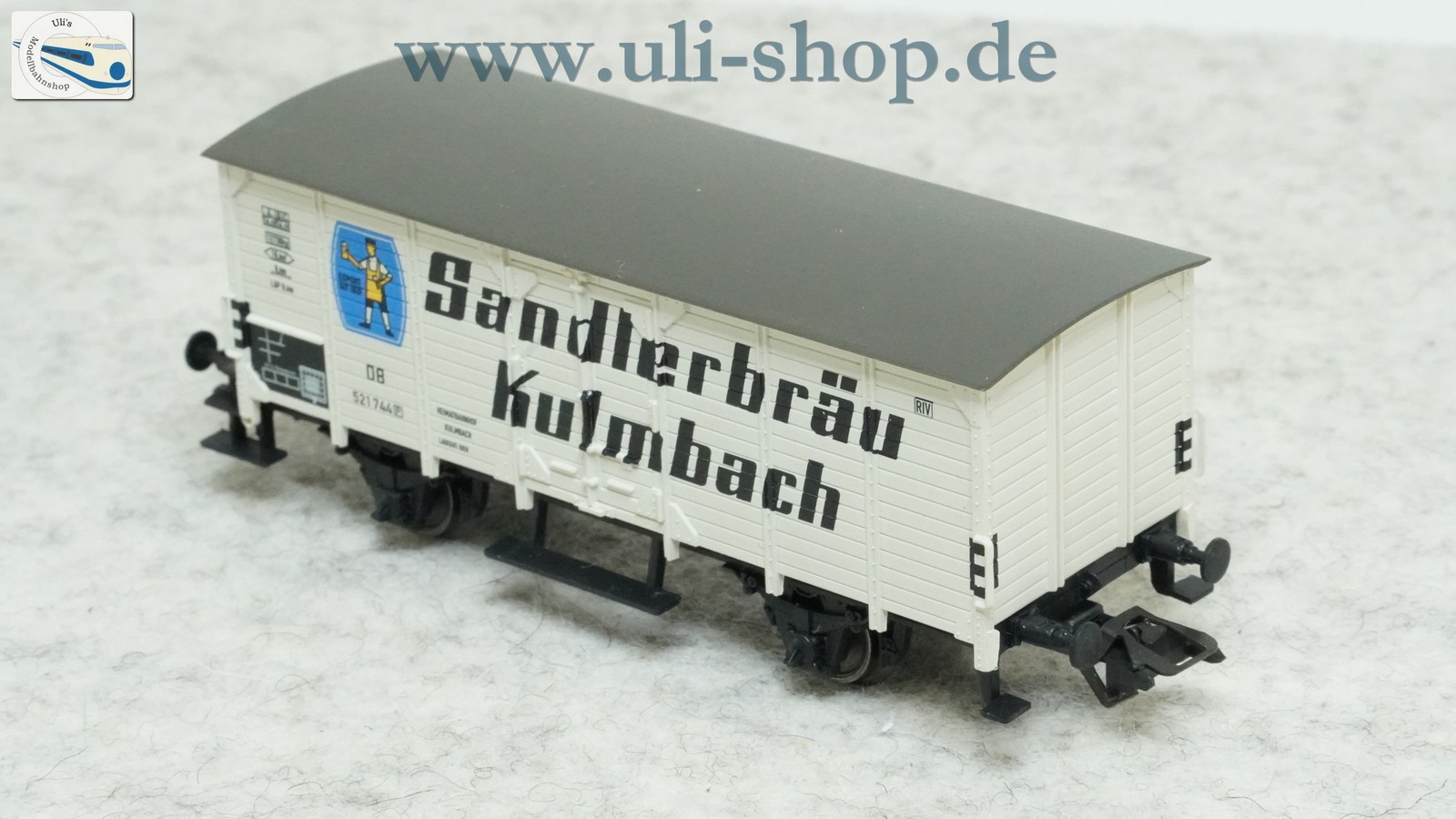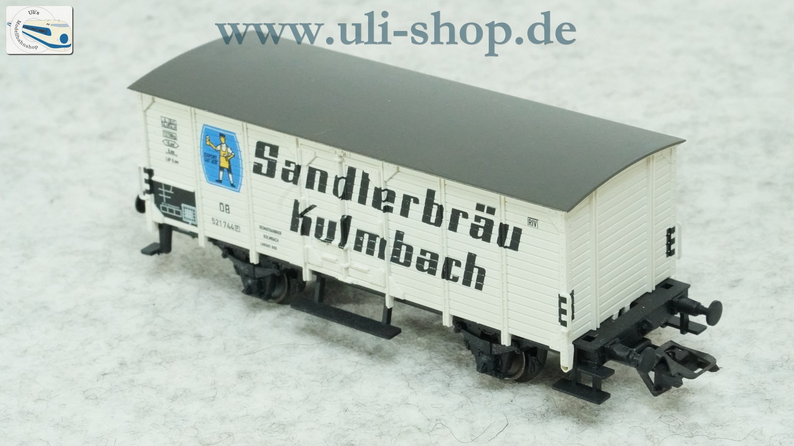 Märklin H0 unverpackter Wagen (I125) Sandlerbräu Kulmbach. Den Zustand würde ich als wenig bespielt/gebraucht mit leichten Gebrauchsspuren bezeichnen. Die Originalverpackung (OVP) ist leider nicht mehr vorhanden.