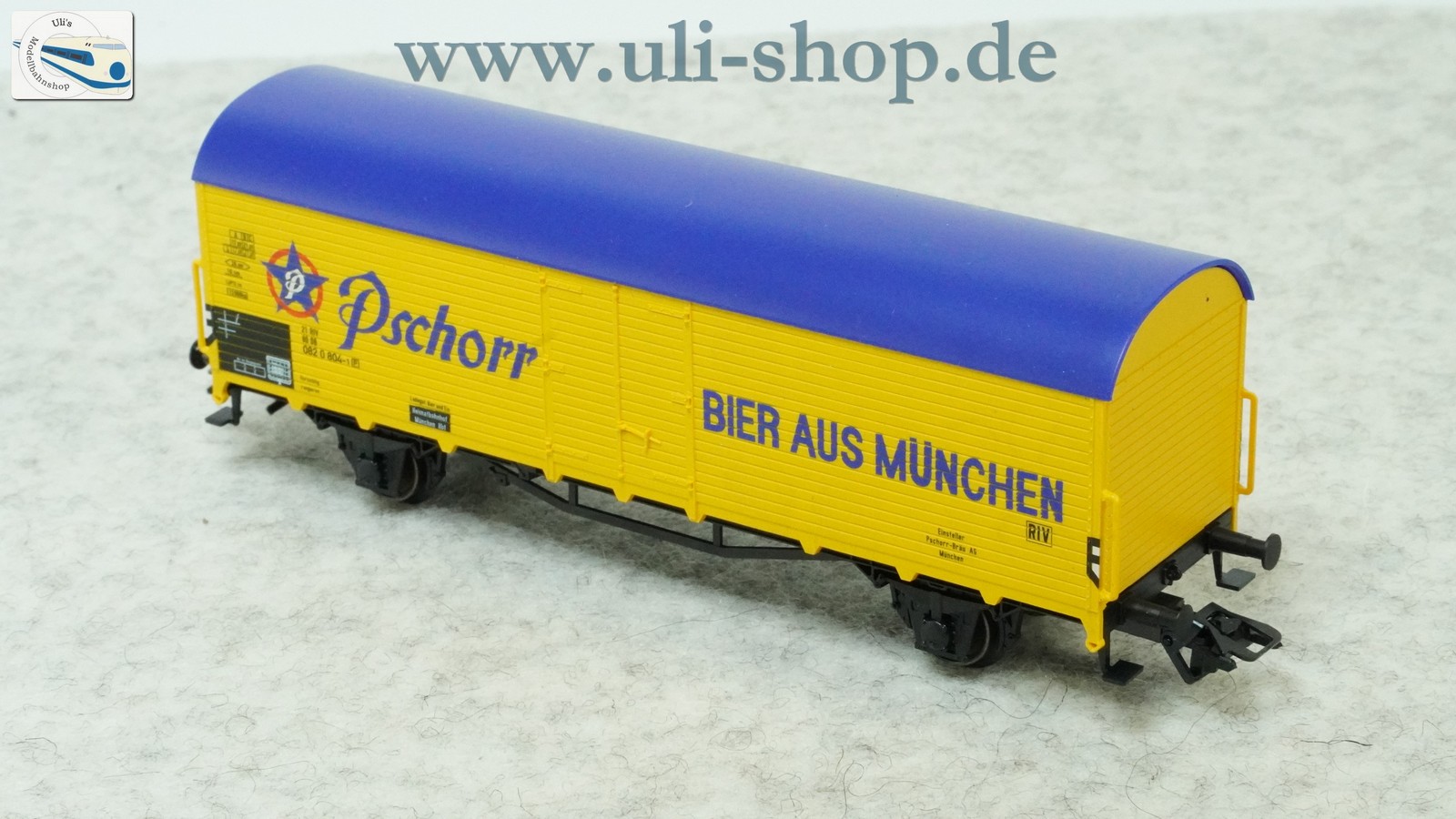Märklin H0 unverpackter Wagen (I39) Bierwagen Pschorr. Den Zustand würde ich als wenig bespielt/gebraucht mit leichten Gebrauchsspuren bezeichnen. Die Originalverpackung (OVP) ist leider nicht mehr vorhanden.
