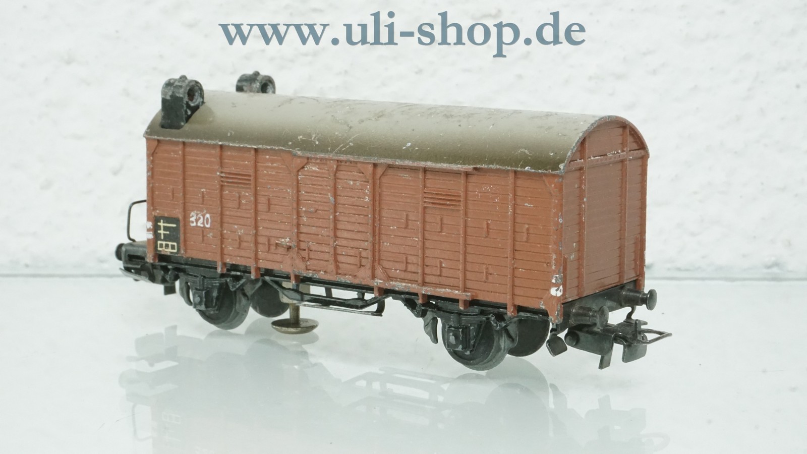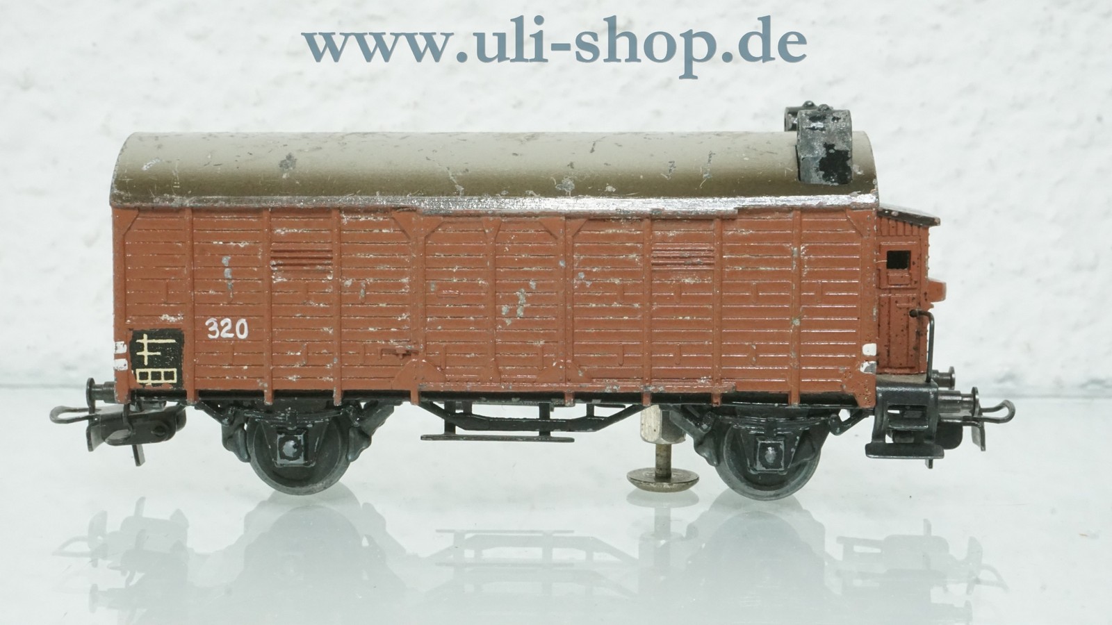 Märklin H0 zweiachsiger gedeckter Güterwagen mit Bremserhäuschen. Der Artikel ist für den Betrieb mit Wechselstrom vorgesehen. Die Achsen haben etwas Flugrost.