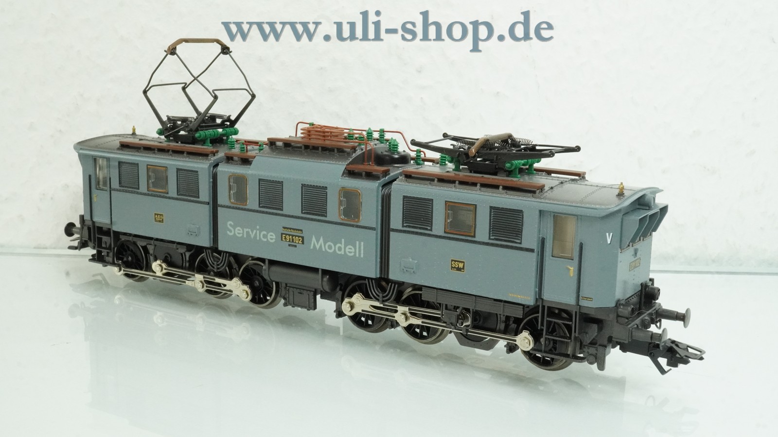 Märklin HAMO H0 E-Lok mit der Artikelnummer 3828 Br. E91 102 der DR Märklin Sondermodell "Service Modell". Der Artikel ist für den Betrieb mit Gleichstrom vorgesehen. Die Lok ist mit einem Digital-Decoder ausgestattet. Die Originalverpackung ist vorhanden.