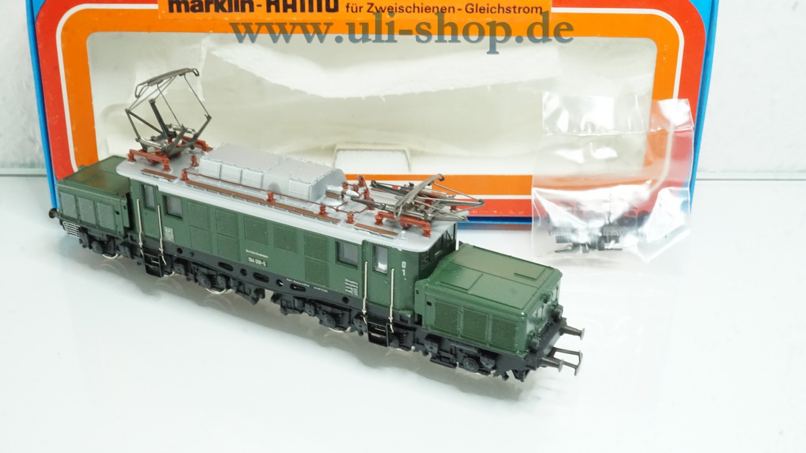 Märklin-Hamo H0 E-Lok mit der Artikelnummer 8322 Br. 194 091-5 der DB. Der Artikel ist für den Betrieb mit Gleichstrom vorgesehen. Die Lok ist analog, sie kann daher nicht auf digital gesteuerten Anlagen fahren. Die Originalverpackung ist vorhanden.