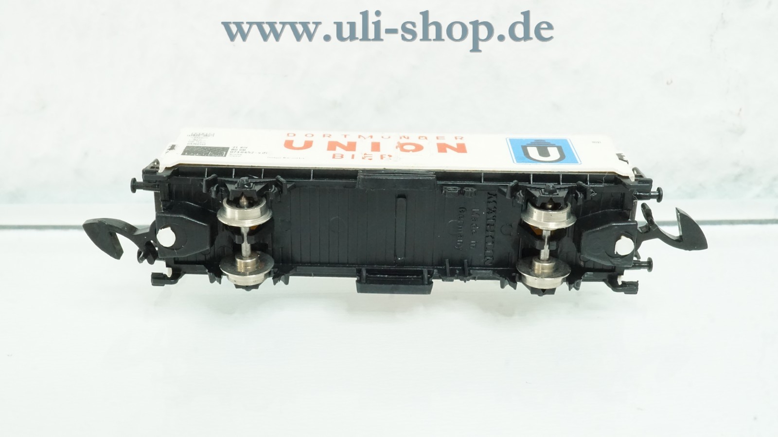 Märklin mini-club Z Güterwagen mit der Artikelnummer 8601 Bierwagen Dortmunder Union (AX 149). Der Artikel ist für den Betrieb mit Gleichstrom vorgesehen. Die Originalverpackung ist vorhanden. Die OVP hat auf der Rückseite einen Aufkleber.