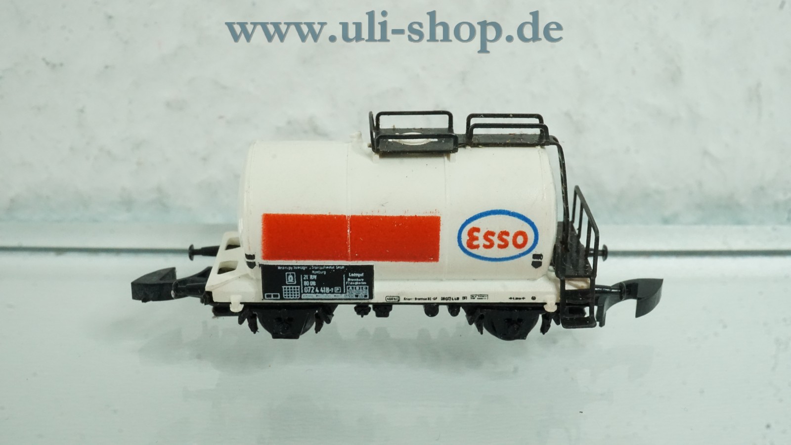 Märklin mini-club Z mit der Artikelnummer 8612 Kesselwagen Esso mit Bremszeichen (AX 116). Der Artikel ist für den Betrieb mit Gleichstrom vorgesehen. Die Originalverpackung ist leider nicht mehr vorhanden.