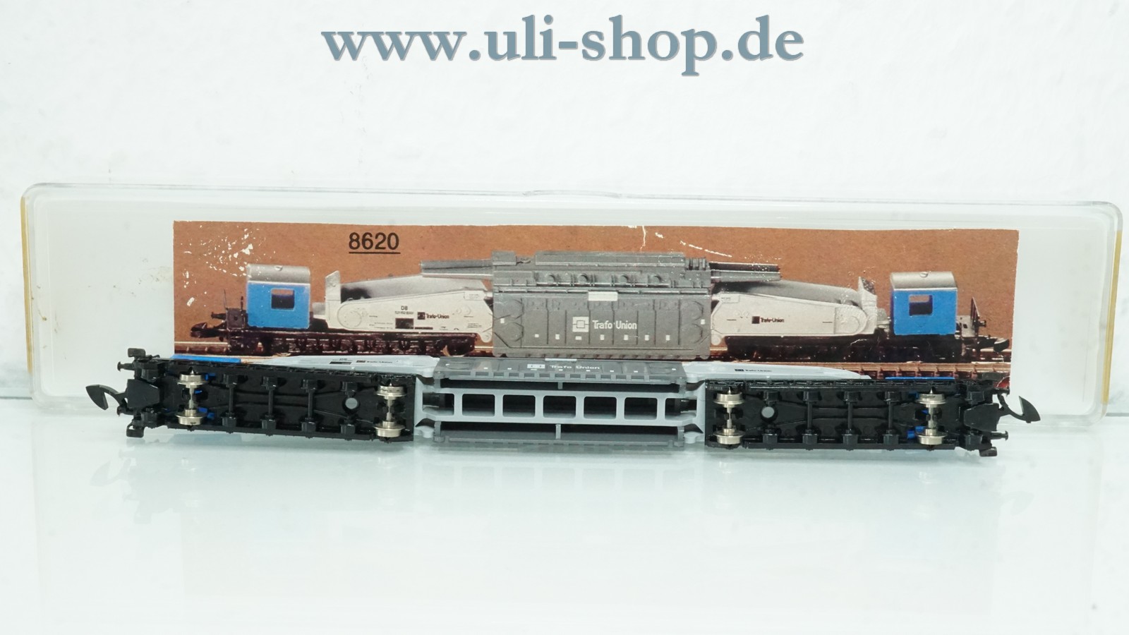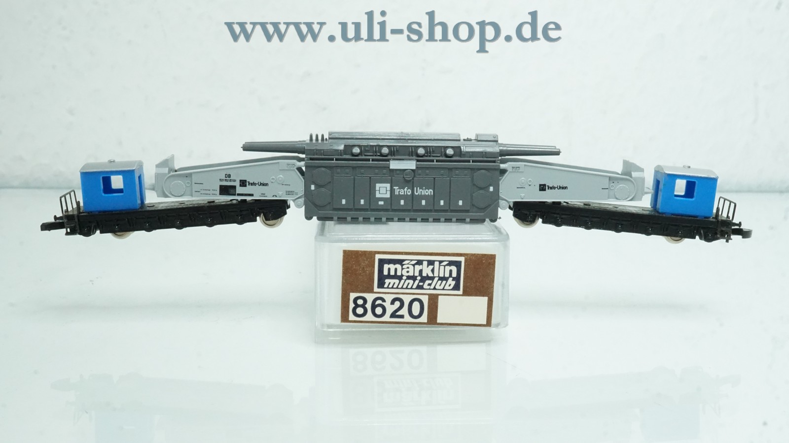 Märklin mini-club Z Güterwagen mit der Artikelnummer 8620 Trafowagen. Der Artikel ist für den Betrieb mit Gleichstrom vorgesehen. Die Originalverpackung ist vorhanden.