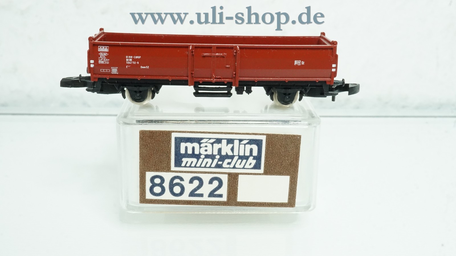 Märklin mini-club Z Güterwagen mit der Artikelnummer 8622 offener Hochbordwagen (AX 167). Der Artikel ist für den Betrieb mit Gleichstrom vorgesehen. Die Originalverpackung ist vorhanden.