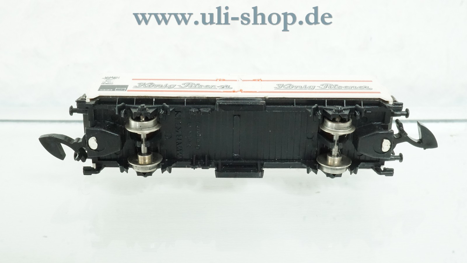 Märklin mini-club Z mit der Artikelnummer 8634 Bierwagen König-Pilsener (AX 096). Der Artikel ist für den Betrieb mit Gleichstrom vorgesehen. Die Originalverpackung ist leider nicht mehr vorhanden.