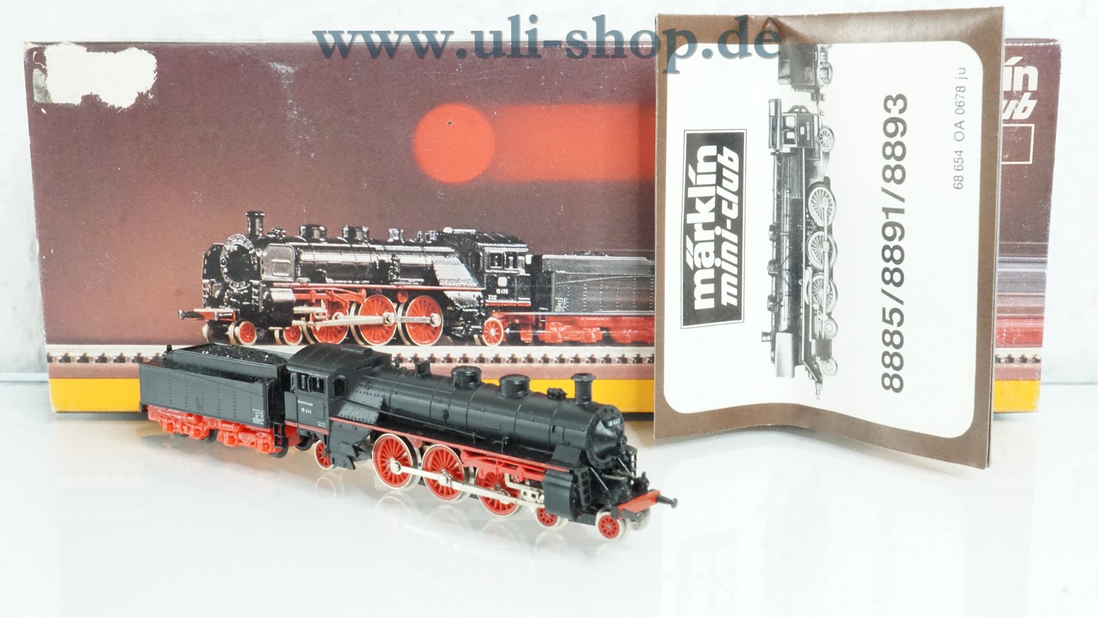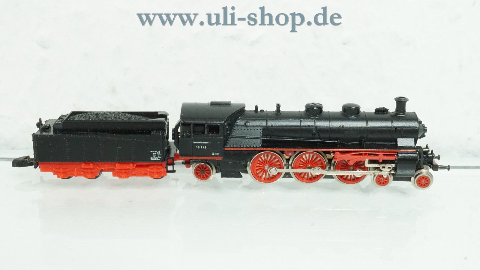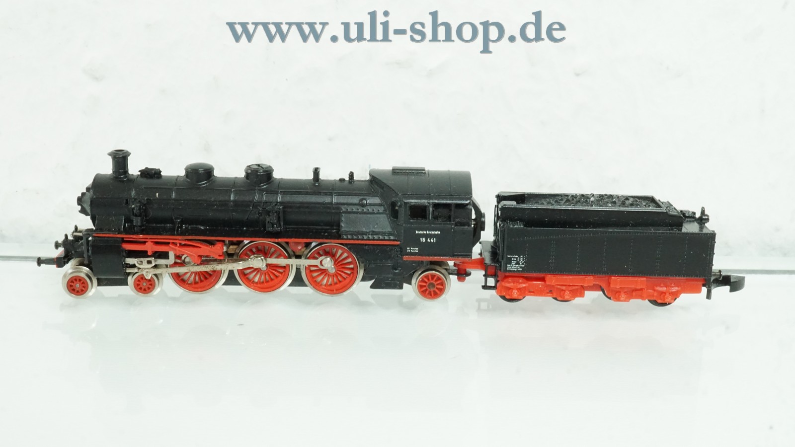 Märklin mini-club Z Dampflok mit der Artikelnummer 8893 Br 18 441 der DR. Der Artikel ist für den Betrieb mit Gleichstrom vorgesehen. Die Lok ist analog, sie kann daher nicht auf digital gesteuerten Anlagen fahren. Die Originalverpackung ist vorhanden, die Kartonhaut ist aber beschädigt.