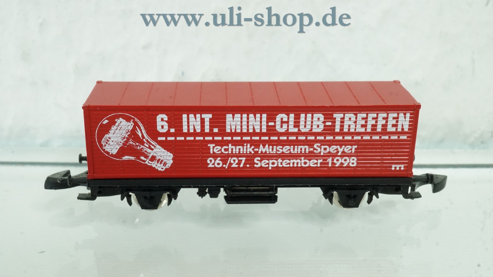 Märklin mini-club Z Containerwagen Mini-Club Treffen Speyer. Der Artikel ist für den Betrieb mit Gleichstrom vorgesehen. Die Originalverpackung ist leider nicht mehr vorhanden. Sondermodell zum 6. Internationalen Mini-Club-Treffen im Technik-Museum Speyer.