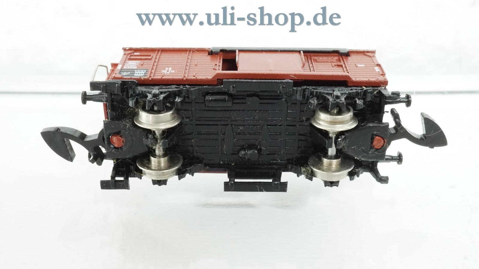 Märklin mini-club Z gedeckter Güterwagen mit Bremserhaus. Der Artikel ist für den Betrieb mit Gleichstrom vorgesehen. Die Originalverpackung ist leider nicht mehr vorhanden.