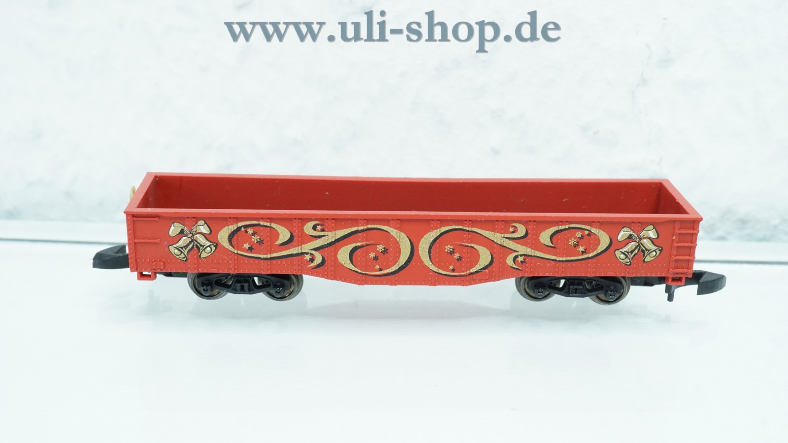 Märklin mini-club Z Hochbordwagen Weihnachten. Der Artikel ist für den Betrieb mit Gleichstrom vorgesehen. Die Originalverpackung ist leider nicht mehr vorhanden. Es handelt sich hier nur um einen Einzelwagen aus der Zugpackung mit der Artikelnummer 81845.