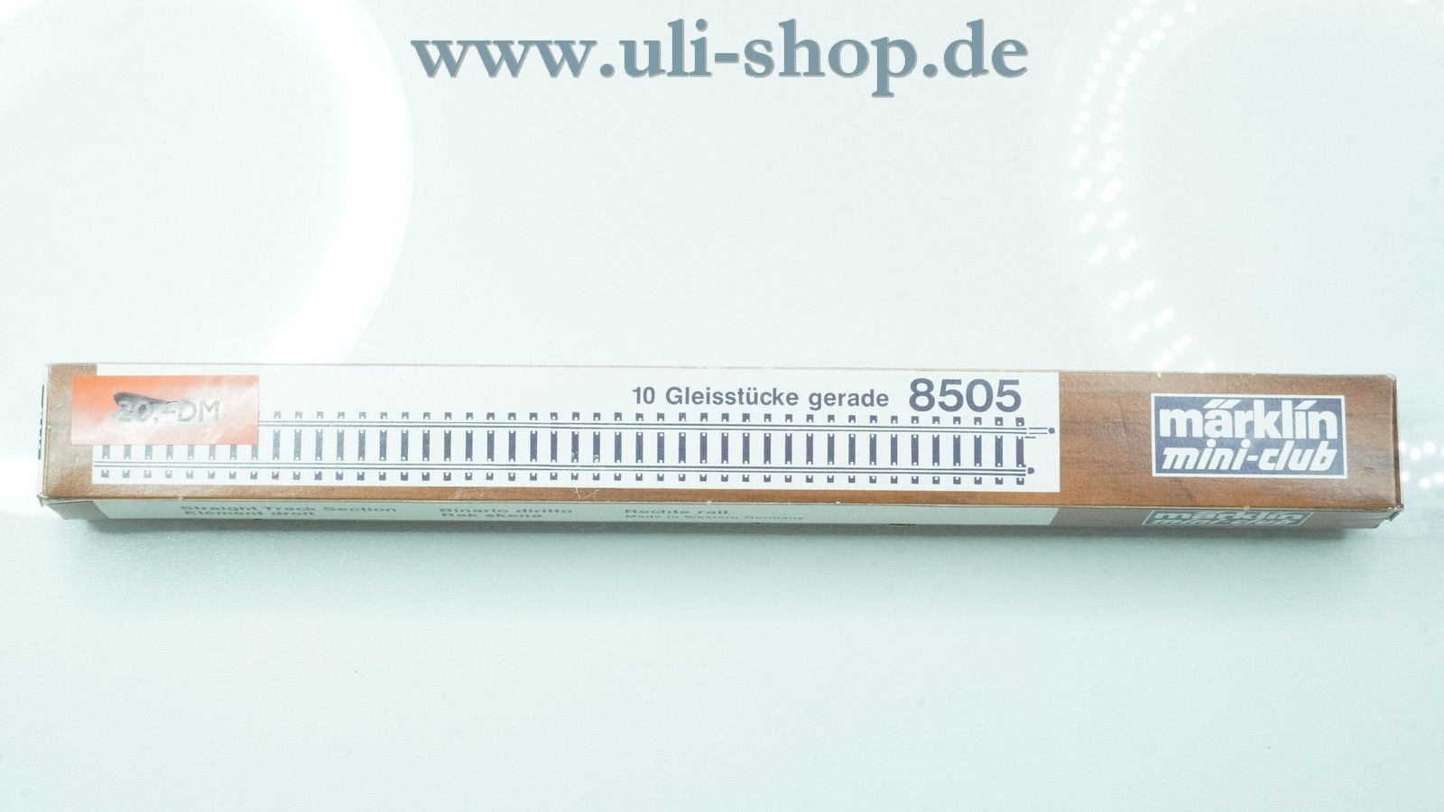 Märklin Z Gleismaterial mit der Artikelnummer 8505 Gleis gerade 10er Pack L 220 mm. Der Artikel wird mit der Originalverpackung geliefert.