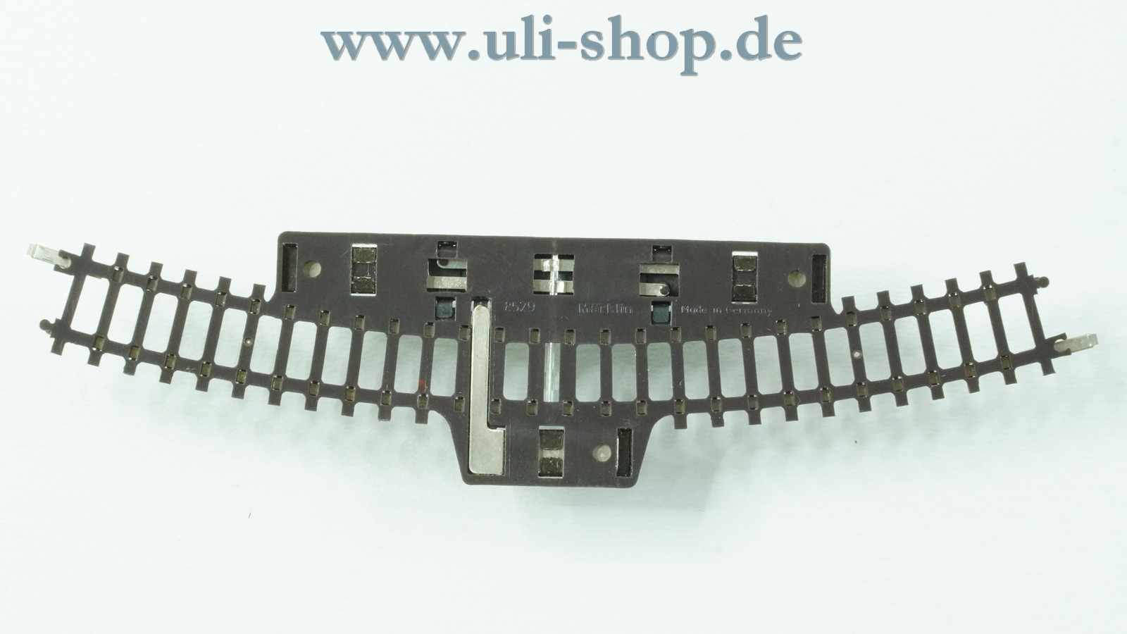 Märklin Z Gleismaterial mit der Artikelnummer 8529 Schaltgleis gebogen R 195 mm 30°. Der Artikel wird ohne Originalverpackung geliefert.