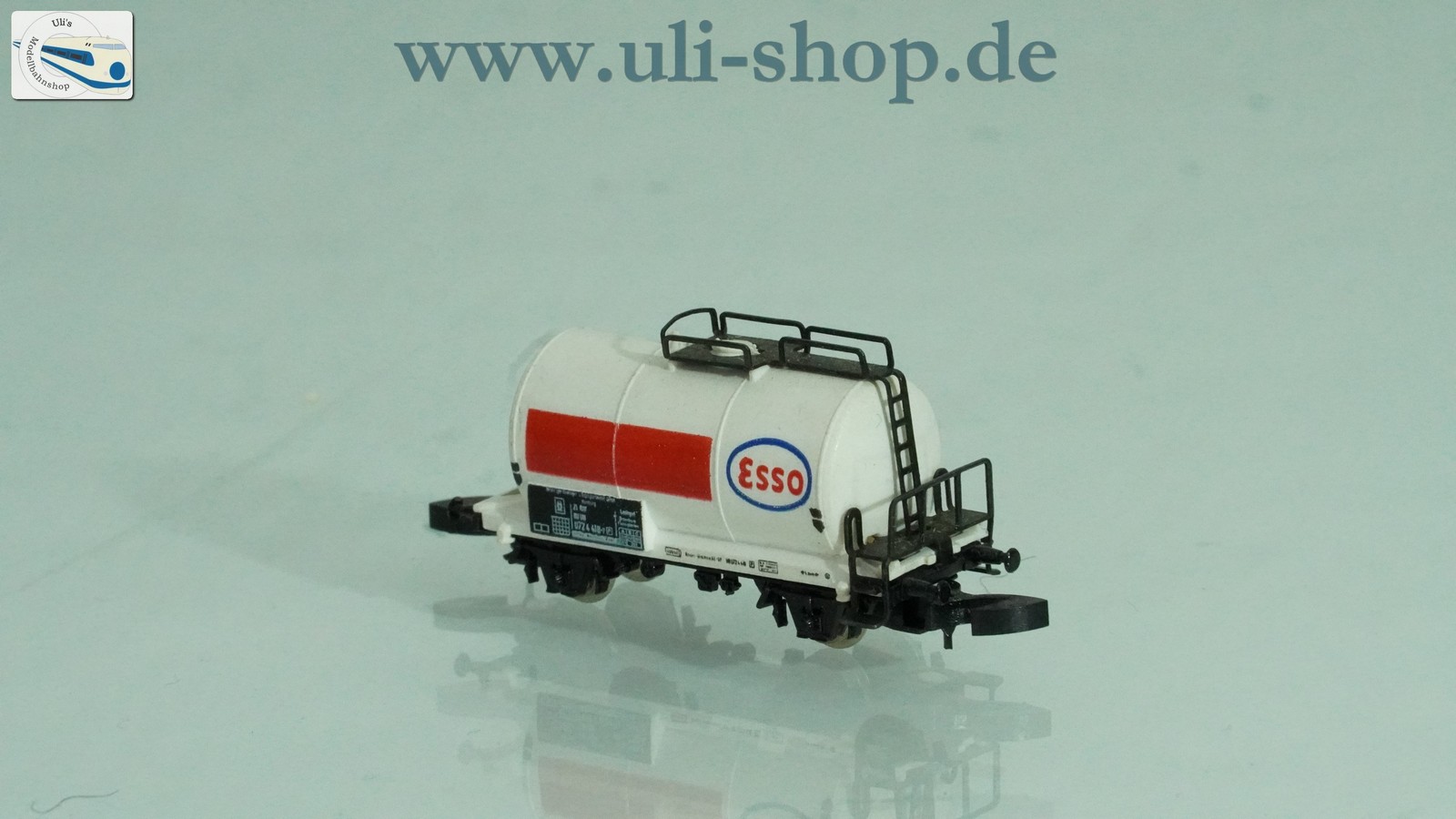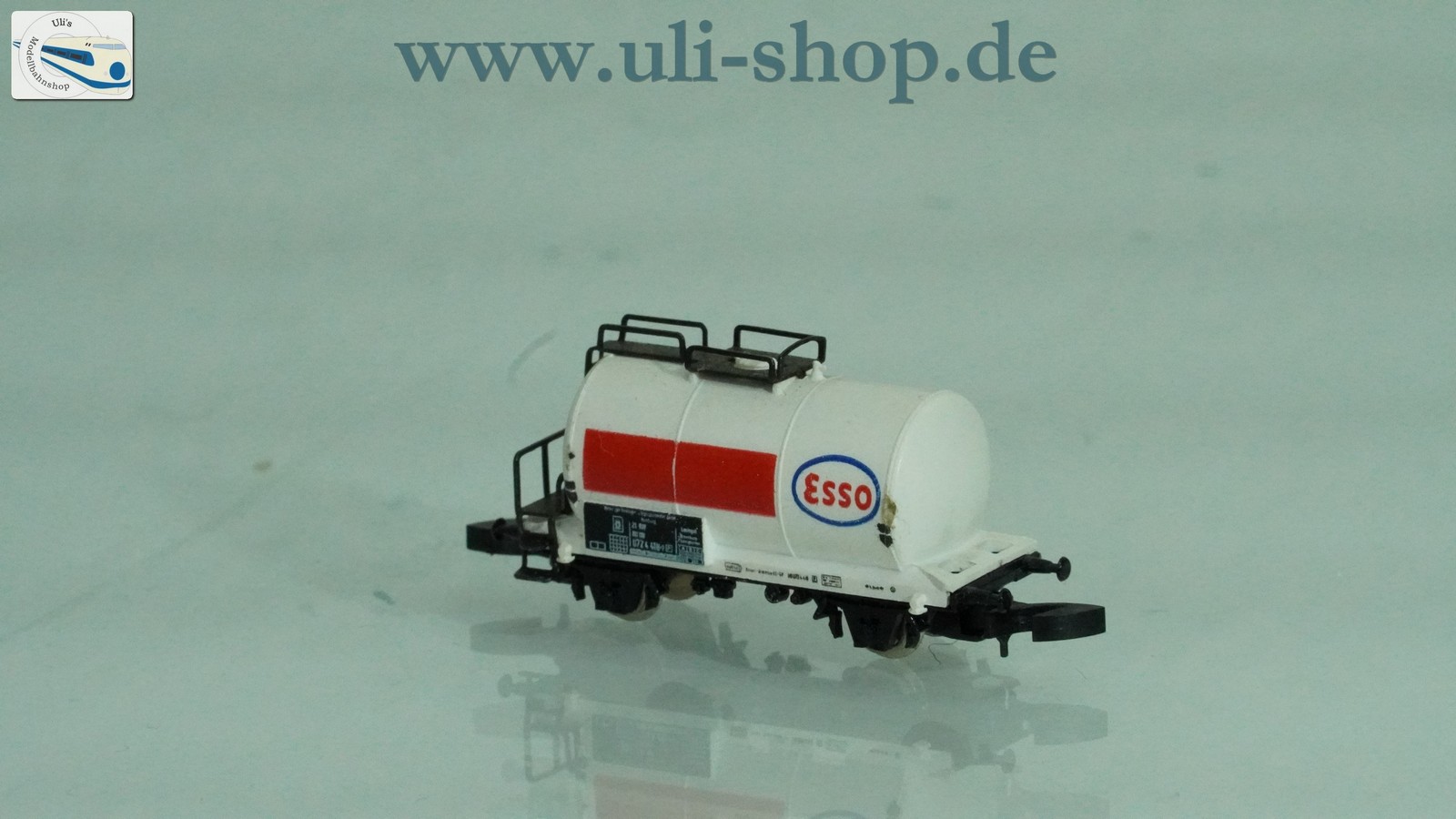Märklin mini-club Z Güterwagen mit der Artikelnummer 8612 Kesselwagen Esso (22). Den Zustand würde ich als wenig bespielt/gebraucht mit leichten Gebrauchsspuren bezeichnen. Die Originalverpackung (OVP) ist leider nicht mehr vorhanden. Der Fleck an dem Rand des Kessels auf Bild 1 war nur eine Verschmutzung die ich mittlerweile weggeputzt habe.