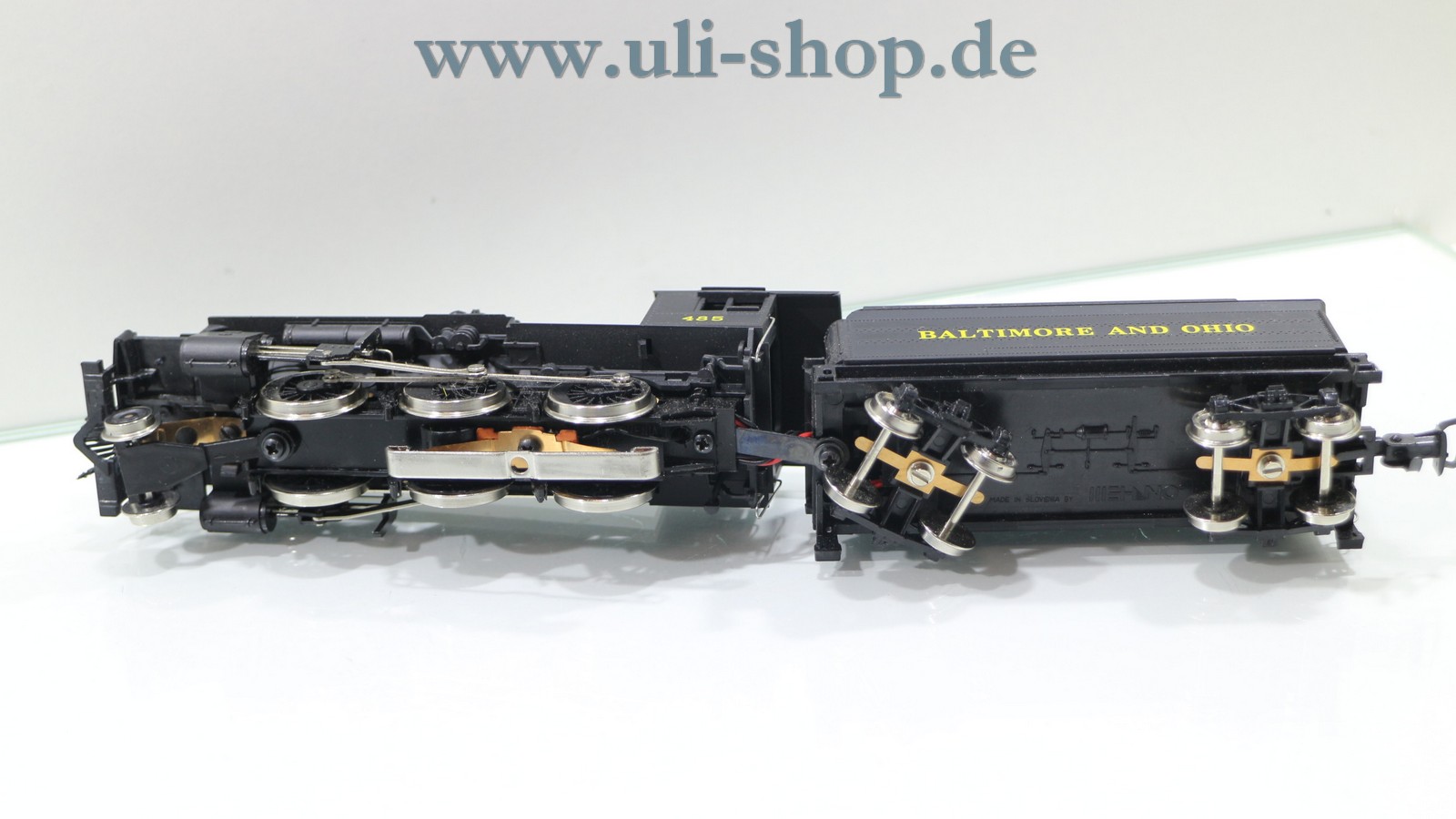 Mehano H0 Dampflok mit der Artikelnummer M9811 2-6-0 485 Gesellschaft Baltimore and Ohio. Der Artikel ist für den Betrieb mit Wechselstrom vorgesehen. Die Lok ist analog, sie kann daher nicht auf digital gesteuerten Anlagen fahren. Die Originalverpackung ist vorhanden.