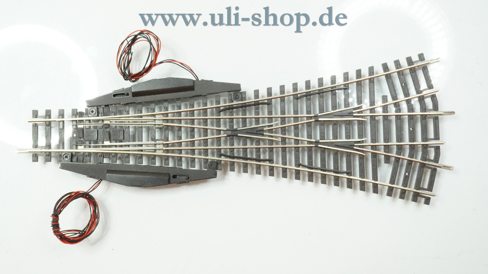 PIKO H0 Gleismaterial mit der Artikelnummer 55225 Piko A-Gleis Weiche Dreiweg mit Antrieb. Die Originalverpackung ist leider nicht mehr vorhanden.