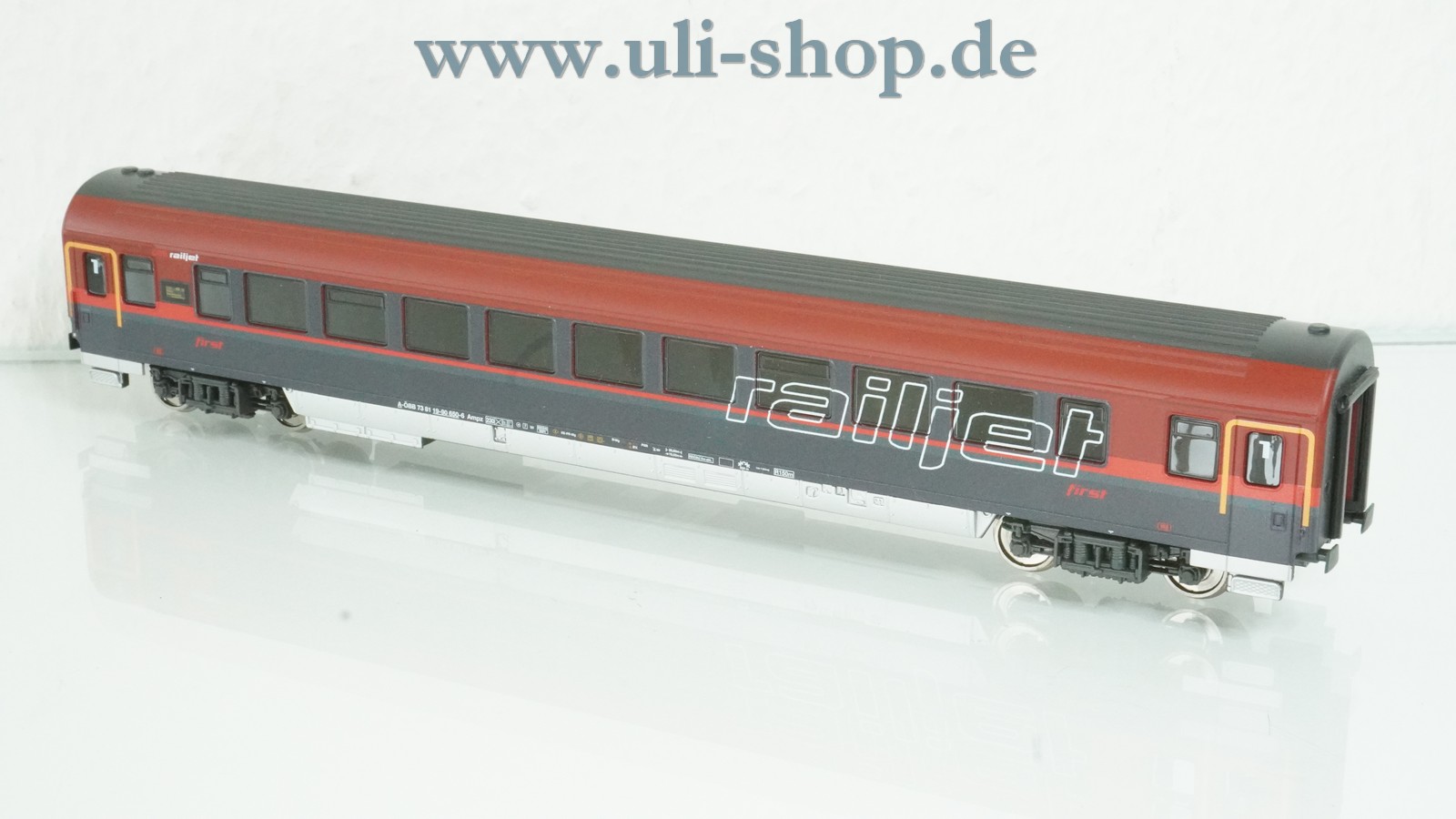 PIKO H0 Personenwagen mit der Artikelnummer 57642 Railjet 1. Klasse der ÖBB Epoche VI. Der Artikel ist für den Betrieb mit Gleichstrom vorgesehen. Die Originalverpackung ist vorhanden.