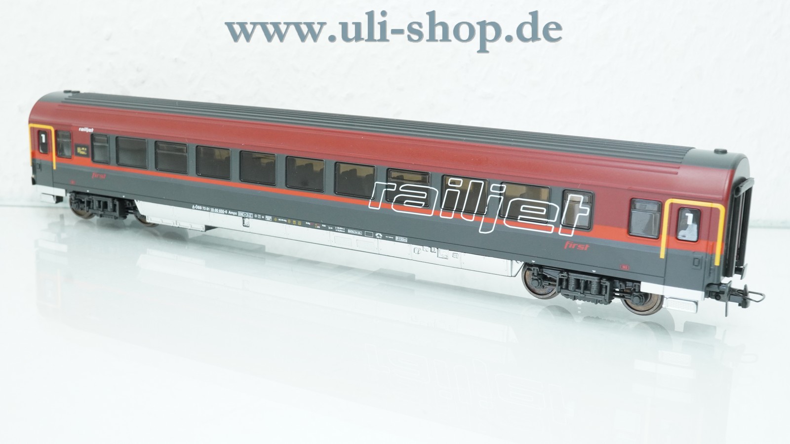 PIKO H0 Personenwagen mit der Artikelnummer 57642 Railjet 1. Klasse der ÖBB. Der Artikel ist für den Betrieb mit Gleichstrom vorgesehen. Die Originalverpackung ist leider nicht mehr vorhanden. Der Wagen hat die Wagennummer 73 81 19-90 650-6.