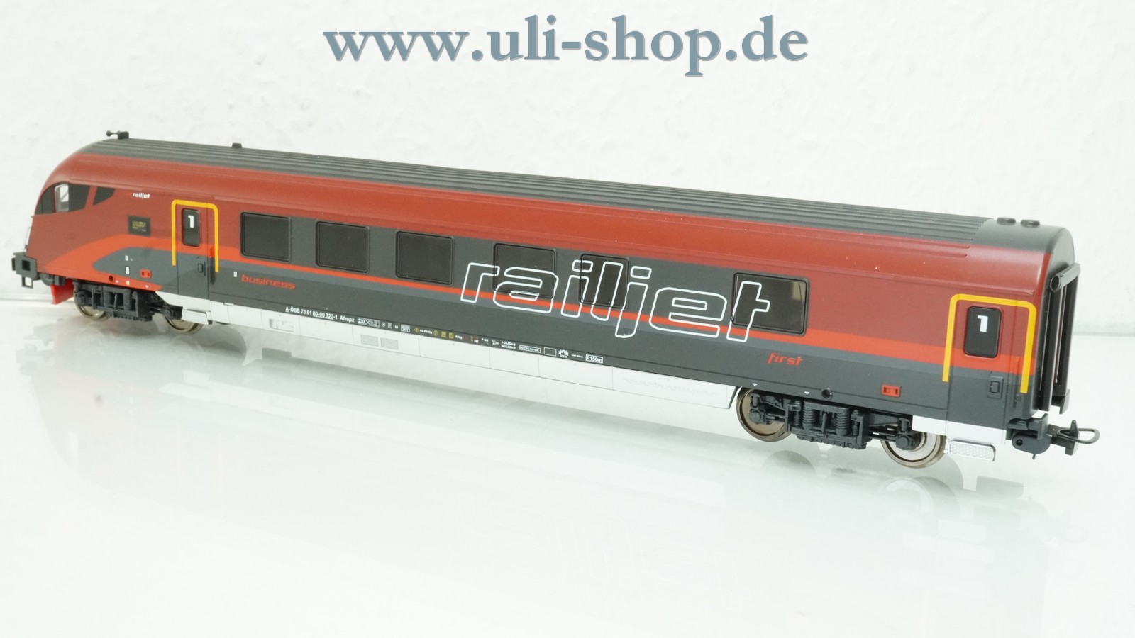 PIKO H0 Personenwagen mit der Artikelnummer 57672-2 Railjet Steuerwagen 1. Klasse der ÖBB. Der Artikel ist für den Betrieb mit Gleichstrom vorgesehen. Die Originalverpackung ist leider nicht mehr vorhanden. Der Wagen hat die Wagennummer 73 81 80-90 720-1.