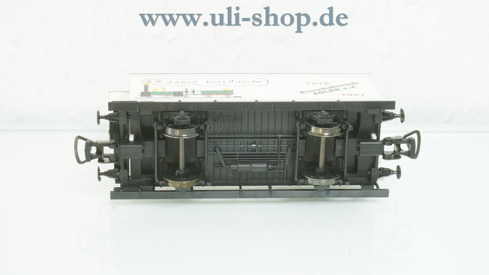 PIKO H0 Güterwagen mit der Artikelnummer 95428 gedeckt mit Bremserhaus Eisenbahnclub ADLER e. V. Der Artikel ist für den Betrieb mit Gleichstrom vorgesehen. Die Originalverpackung ist vorhanden. Sonderwagen 25 Jahre ADLER e. V.