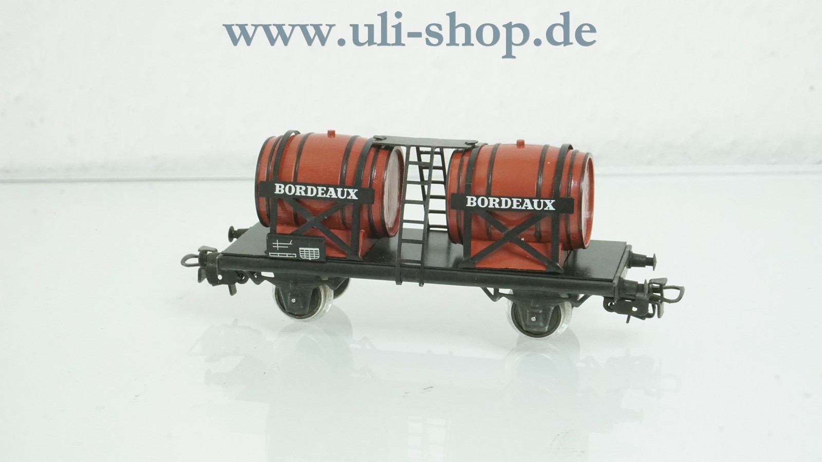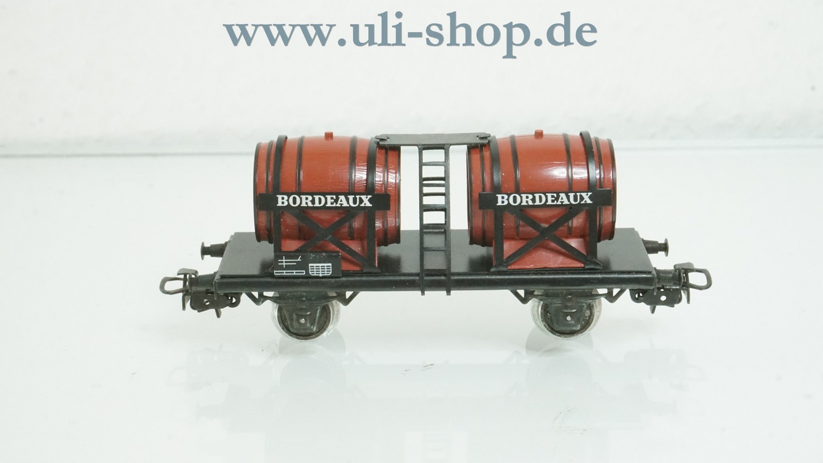 Primex H0 Güterwagen mit der Artikelnummer 2760 Weinfaßwagen Bordeaux. Der Artikel ist für den Betrieb mit Wechselstrom vorgesehen. Die Originalverpackung ist leider nicht mehr vorhanden. Es handelt sich hier nur um einen Einzelwagen aus der Zugpackung mit der Artikelnummer 2760.