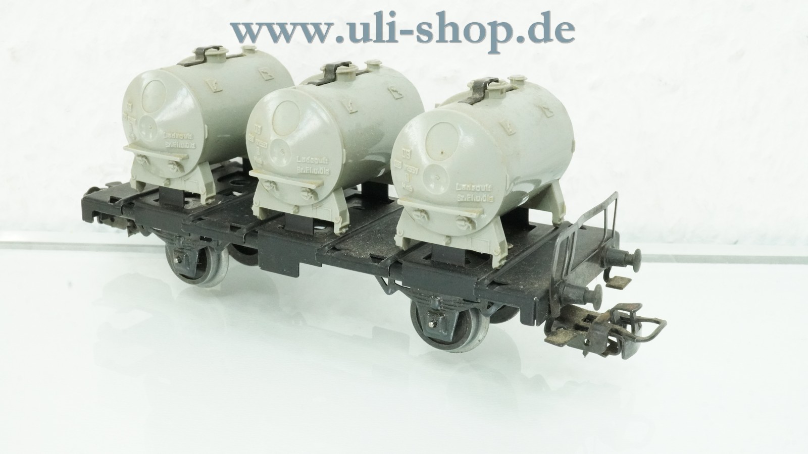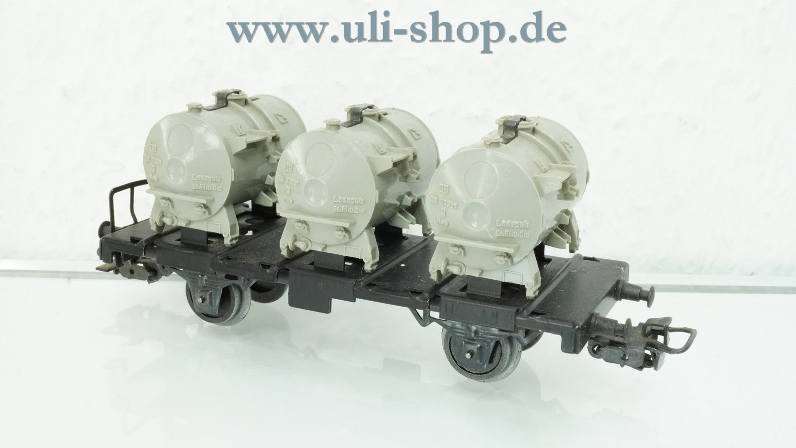 Primex H0 Güterwagen mit der Artikelnummer 4585 Behältertragwagen. Der Artikel ist für den Betrieb mit Wechselstrom vorgesehen. Die Originalverpackung ist vorhanden, die Kartonhaut ist aber beschädigt.