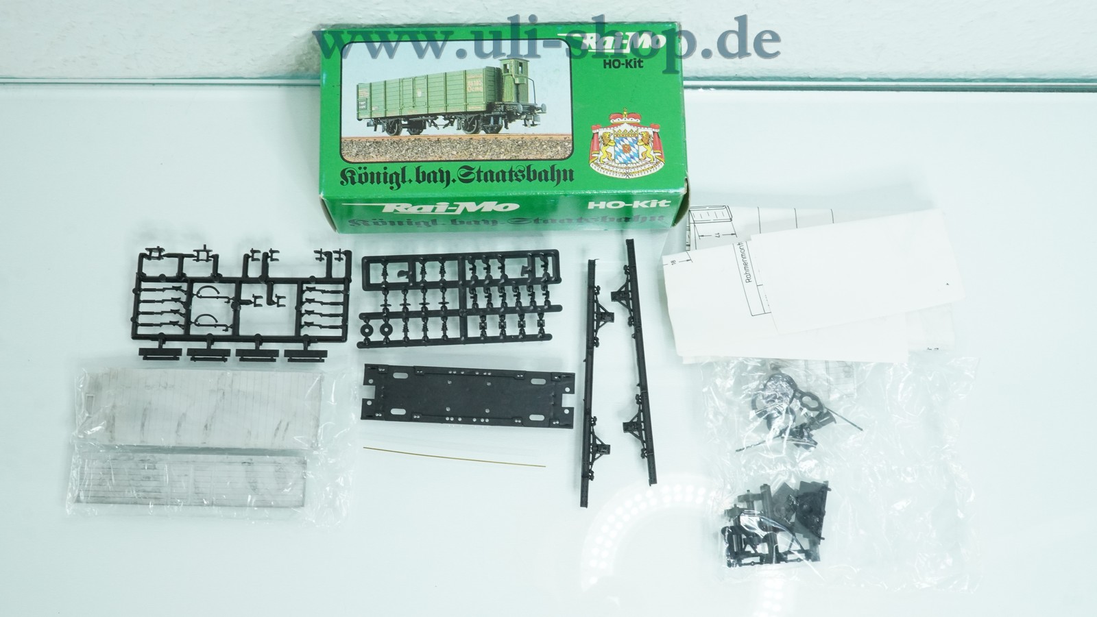 Rai-Mo H0 Güterwagen mit der Artikelnummer 200 128 offen mit Bremserhaus der K.Bay.Sts.B. Bausatz. Der Artikel ist für den Betrieb mit Gleichstrom vorgesehen. Die Originalverpackung ist vorhanden.