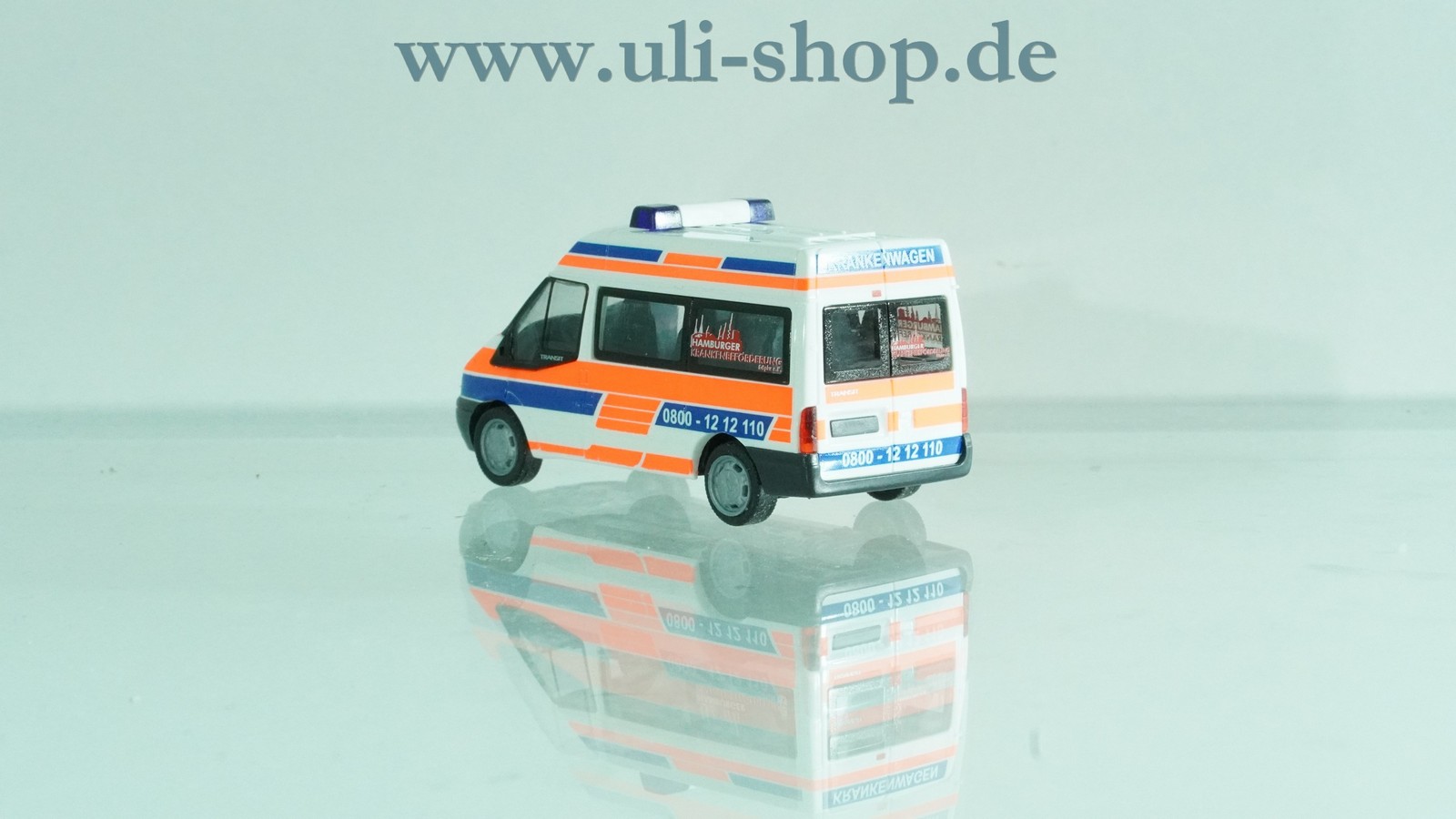 Rietze H0 Modellauto Hamburger Krankenbeförderung Ford Transit. Die Originalverpackung ist leider nicht mehr vorhanden .