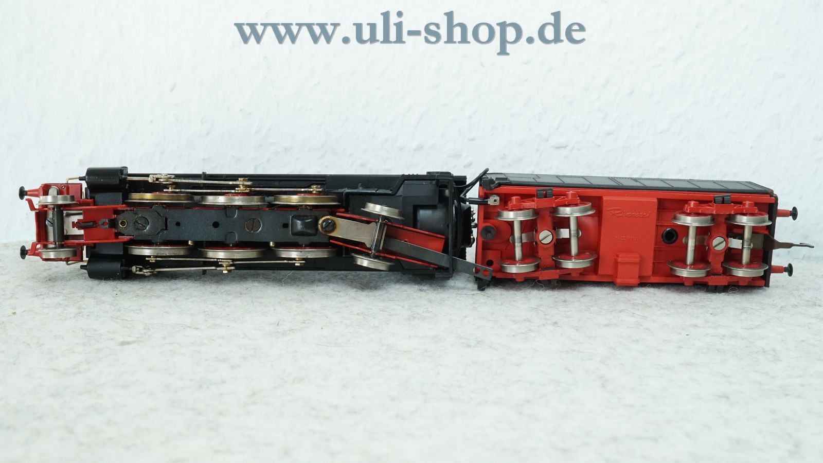 Rivarossi H0 Dampflok mit der Artikelnummer 1119 Br. 685 604 der FS. Der Artikel ist für den Betrieb mit Gleichstrom vorgesehen. Die Lok ist analog, sie kann daher nicht auf digital gesteuerten Anlagen fahren. Die Originalverpackung ist vorhanden, sie ist aber beschädigt. Bei der Lok fällt die Rauchkammertüre leicht raus.