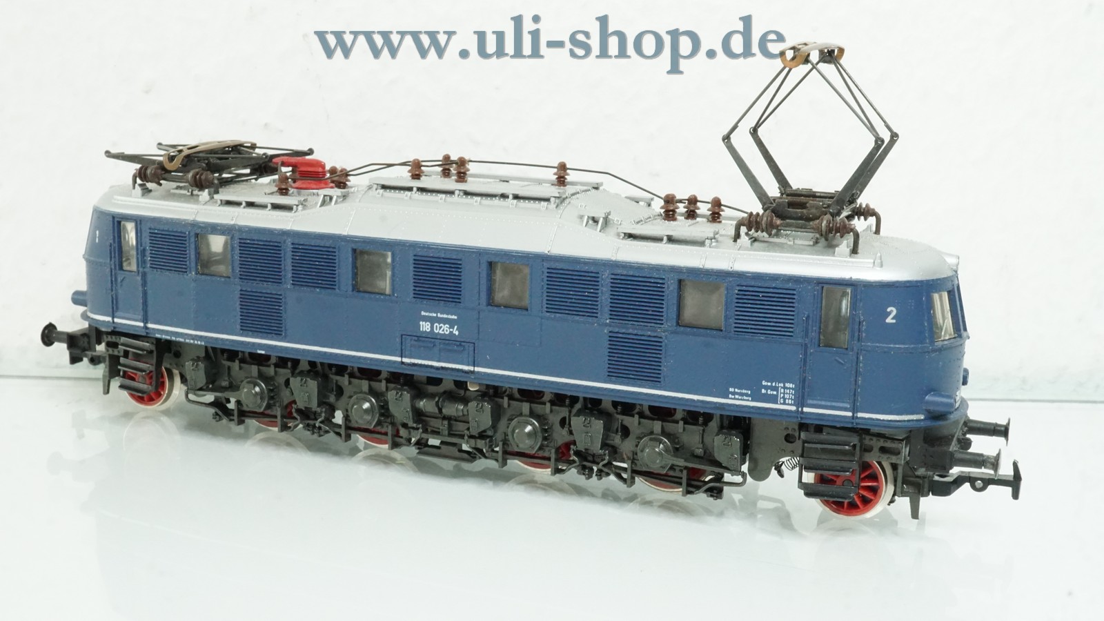 Rivarossi H0 E-Lok mit der Artikelnummer 1673 Br. E 118 026-4 der DB. Der Artikel ist für den Betrieb mit Gleichstrom vorgesehen. Die Lok ist analog, sie kann daher nicht auf digital gesteuerten Anlagen fahren. Die Verpackung ist nicht die Originale, sie stammt von einem anderen Artikel.