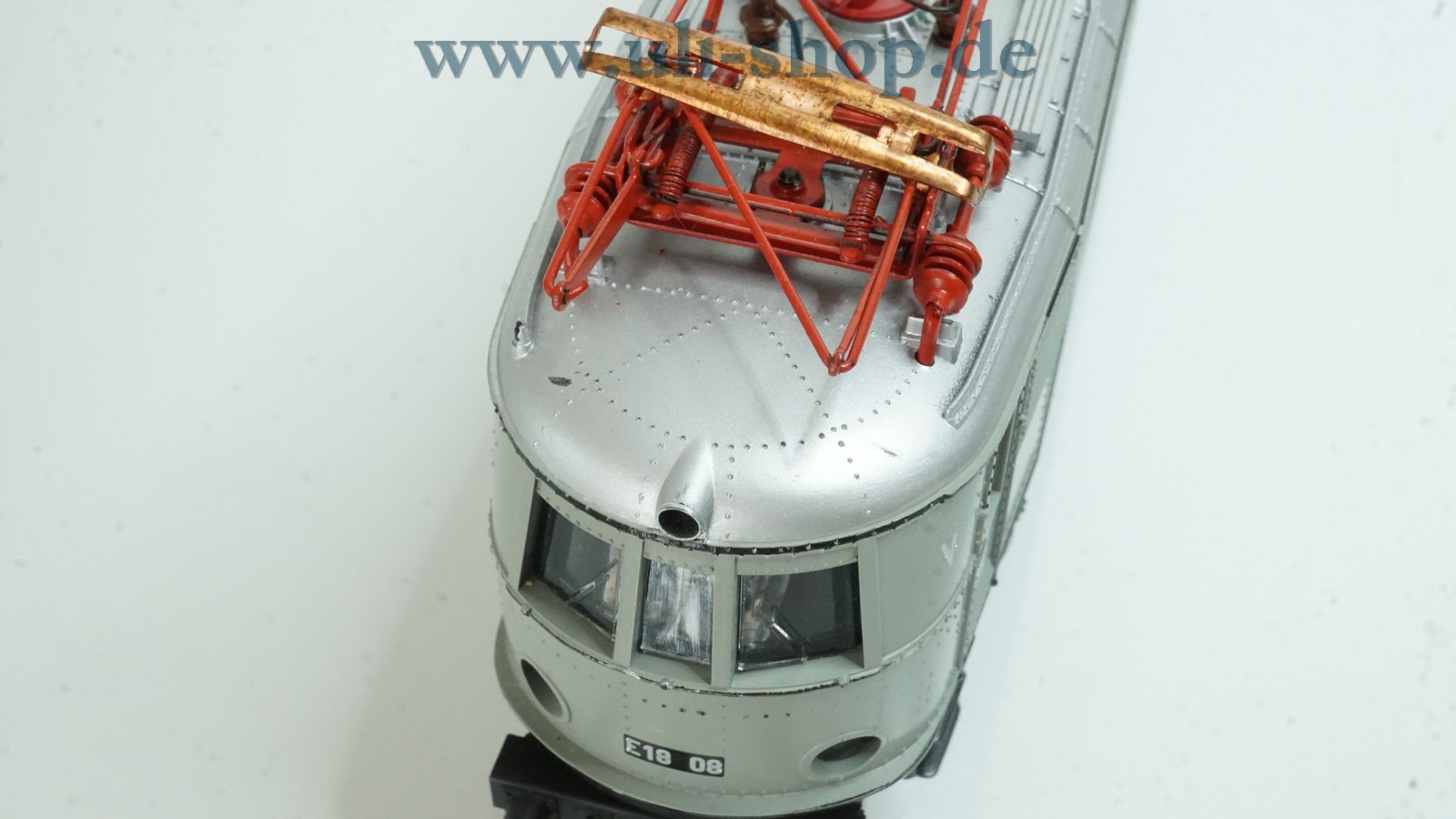 Rivarossi H0 E-Lok mit der Artikelnummer 1677 Br. E 18 08 der DR. Der Artikel ist für den Betrieb mit Gleichstrom vorgesehen. Die Lok ist analog, sie kann daher nicht auf digital gesteuerten Anlagen fahren. Die Originalverpackung ist vorhanden.