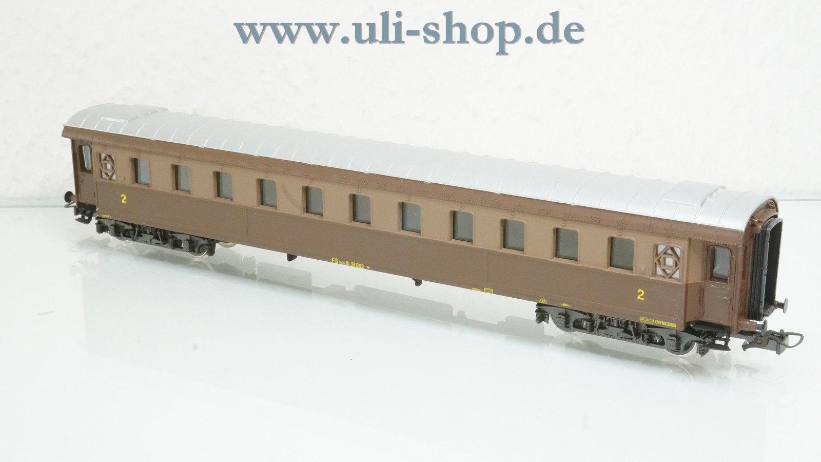 Rivarossi H0 Personenwagen mit der Artikelnummer 2511 Schnellzugwagen 2. Klasse der FS. Der Artikel ist für den Betrieb mit Gleichstrom vorgesehen. Die Originalverpackung ist vorhanden.