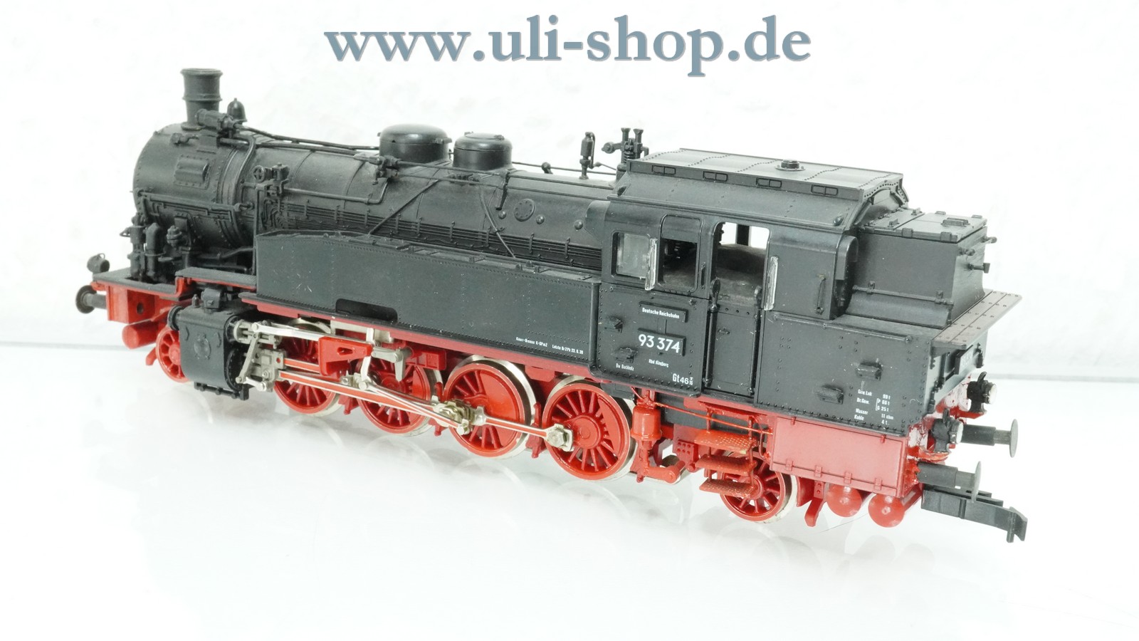 Roco H0 Dampflok mit der Artikelnummer 04122A Br. 93 374 der DR. Der Artikel ist für den Betrieb mit 3-Leiter Gleichstrom vorgesehen. Die Lok ist analog, sie kann daher nicht auf digital gesteuerten Anlagen fahren. Die Originalverpackung ist leider nicht mehr vorhanden. Die Lok hat kleinere Beschädigungen.