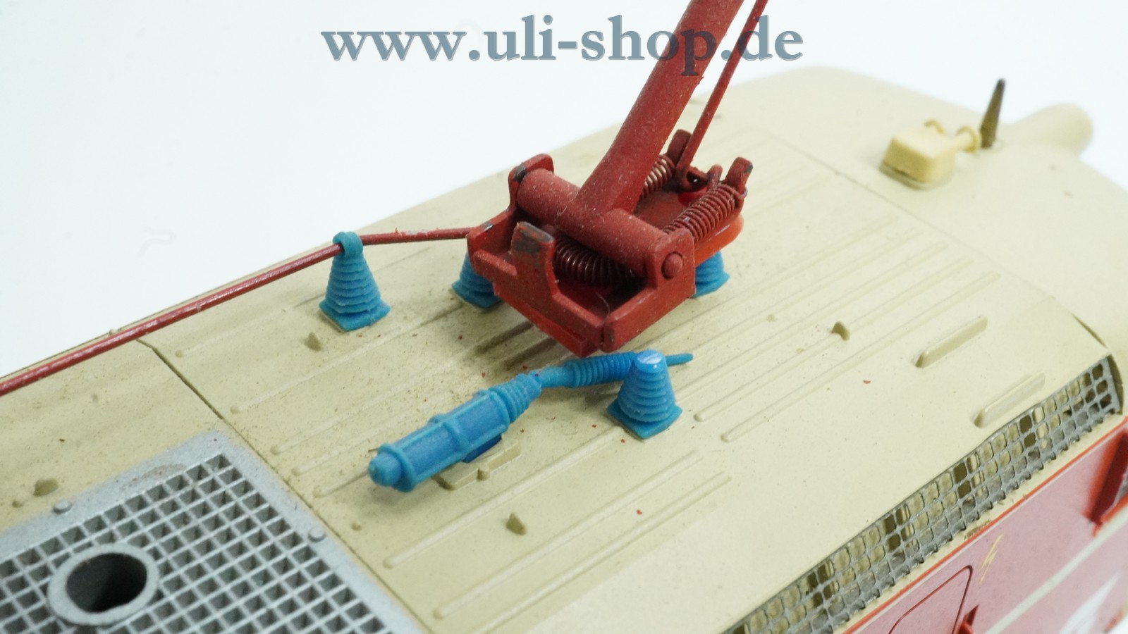 Den optischen Zustand würde ich als wenig bespielt/gebraucht mit leichten Gebrauchsspuren bezeichnen. An einer Front fehlt der Aufnahmeschacht für die Kupplung. Der Artikel und/oder die Verpackung riechen etwas nach Keller. Der Artikel ist etwas verschmutzt. Ein Dachstromabnehmer ist beschädigt.