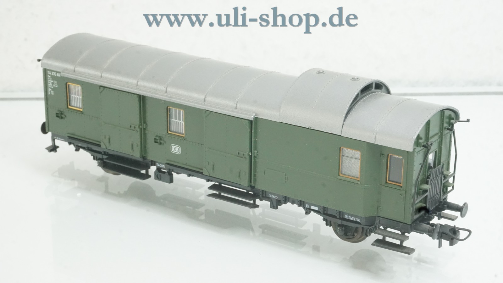 Roco H0 Personenwagen mit der Artikelnummer 4204S Donnerbüchse Gepäckwagen der DB. Der Artikel ist für den Betrieb mit Wechselstrom vorgesehen. Die Originalverpackung ist vorhanden. Bei der Verschmutzung, die etwa rechts unten auf den Bildern zu sehen ist, handelt es um eine Verschmutzung der Linse und nicht des Modells.