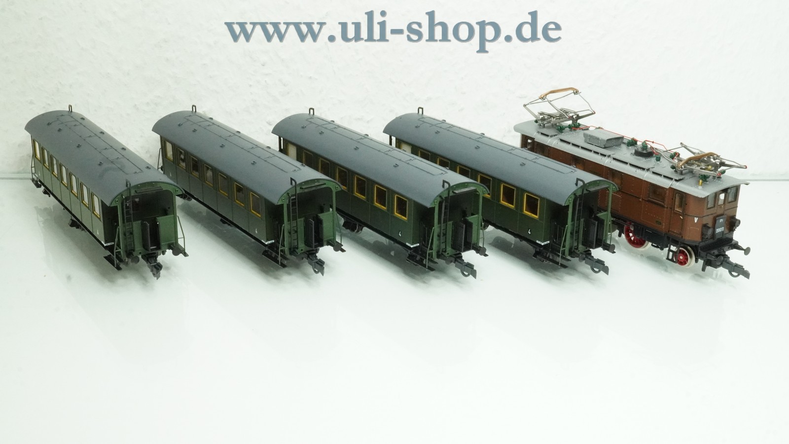 Roco H0 Zugpackung mit der Artikelnummer 43048 Br. EP 2 20011 der DR GV Bayern mit vier kurzen Dreiachsern. Der Artikel ist für den Betrieb mit Gleichstrom vorgesehen. Die Lok ist analog, sie kann daher nicht auf digital gesteuerten Anlagen fahren. Die Originalverpackung ist vorhanden.