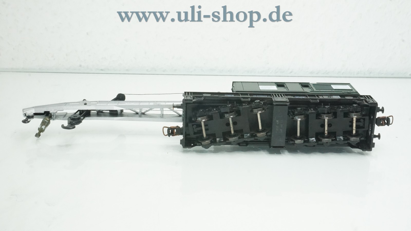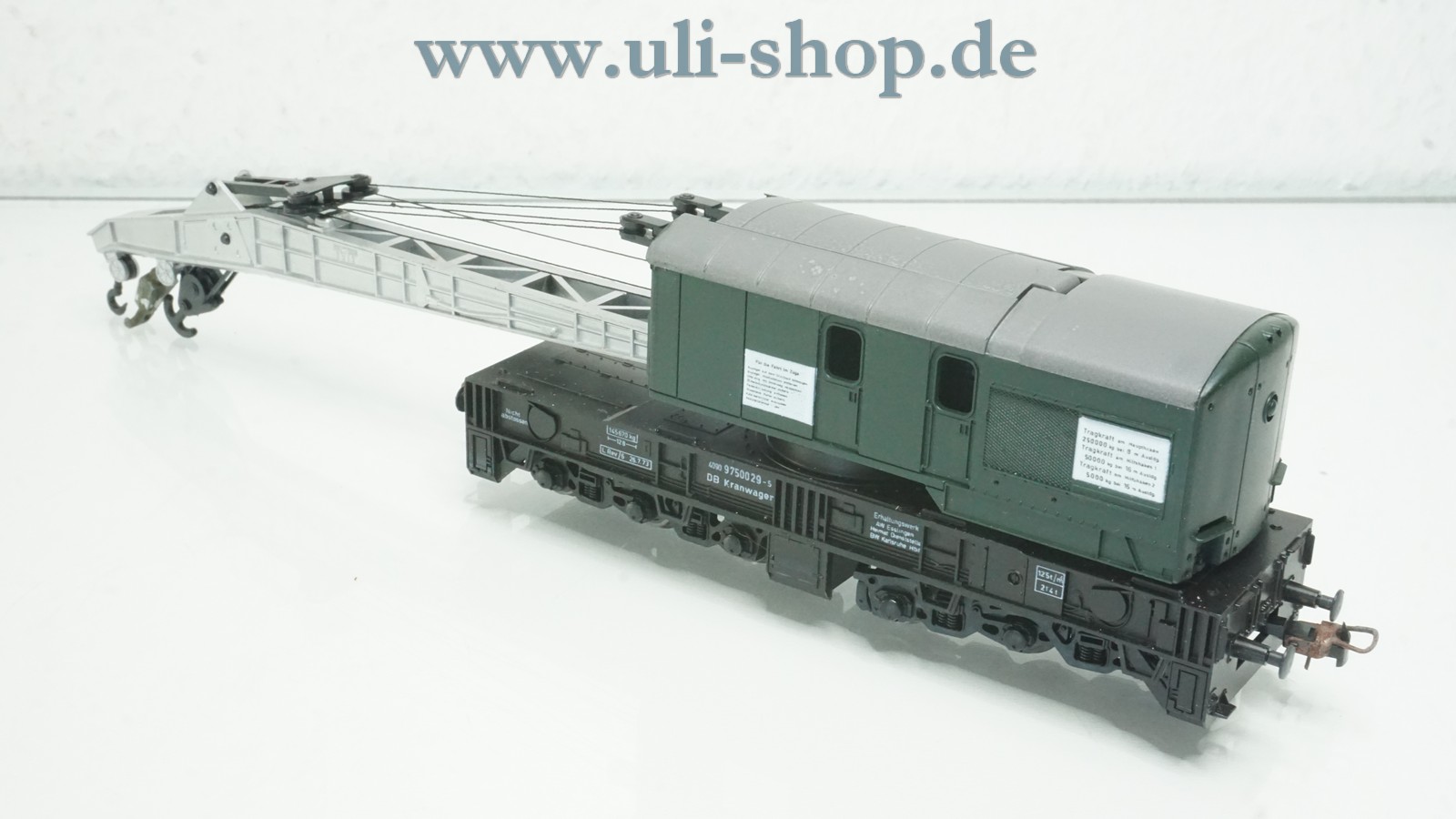 Roco H0 Güterwagen mit der Artikelnummer 4316 Kranwagen der DB in grün ohne Schutzwagen. Der Artikel ist für den Betrieb mit Wechselstrom vorgesehen. Die Originalverpackung ist vorhanden.