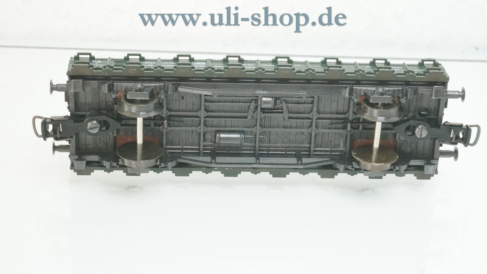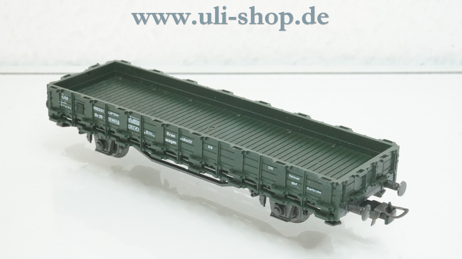 Roco H0 Güterwagen mit der Artikelnummer 4317 Kranschutzwagen der DB Grün ohne Rungen. Der Artikel ist für den Betrieb mit Wechselstrom vorgesehen. Die Originalverpackung ist vorhanden.