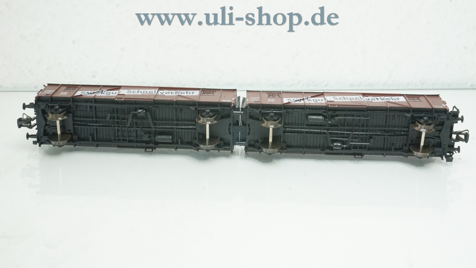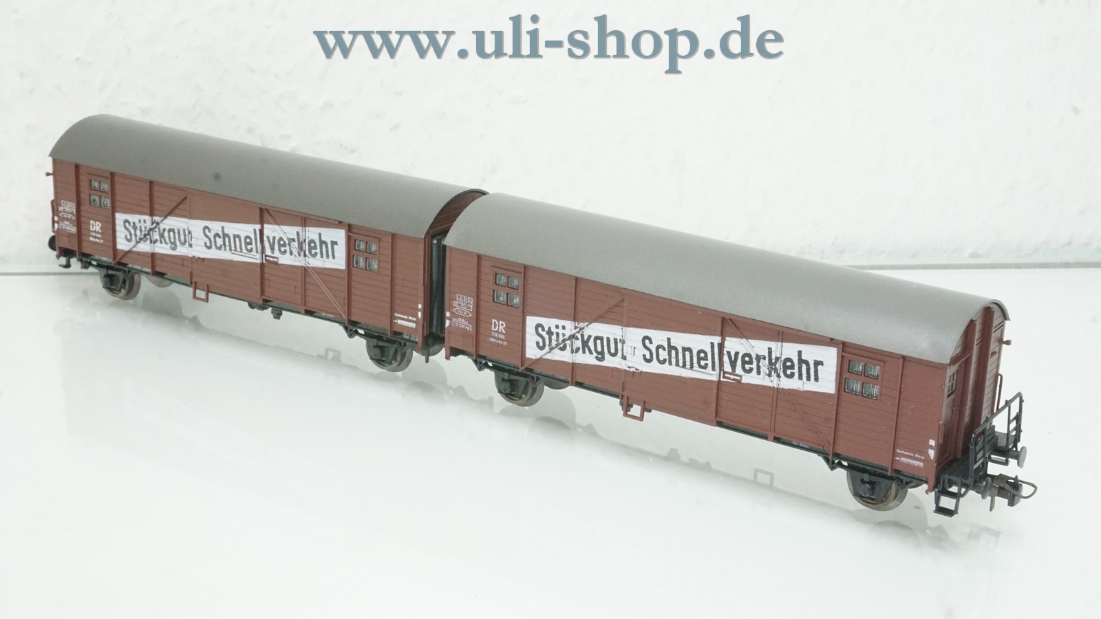 Roco H0 Güterwagen mit der Artikelnummer 4329 Leig-Einheit Stückgut-Schnellverkehr der DR. Der Artikel ist für den Betrieb mit Wechselstrom vorgesehen. Die Originalverpackung ist vorhanden.