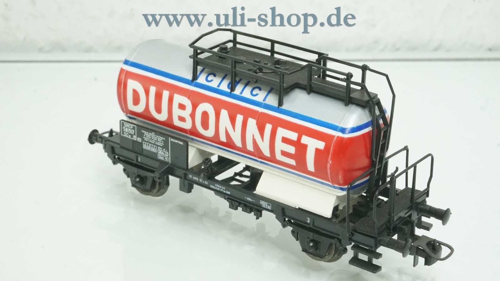 Roco H0 Güterwagen mit der Artikelnummer 4337F Kesselwagen DUBONNET der SNCF. Der Artikel ist für den Betrieb mit Wechselstrom vorgesehen. Die Originalverpackung ist vorhanden.